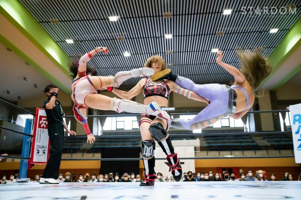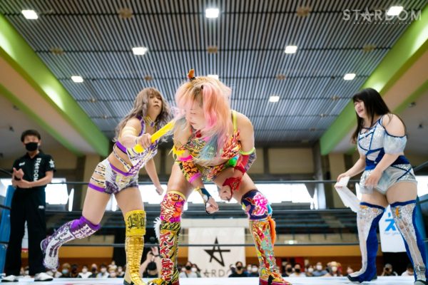 STARSの岩谷麻優&飯田沙耶&羽南組と大江戸隊の鹿島沙希&スターライト・キッド&渡辺桃組が6人タッグマッチで全面対決。5・28大田区では鹿島&キッド&桃組が舞華&ひめか&なつぽいの防衛最多記録更新を阻止してアーティスト・オブ・スターダム王座を奪取。この試合はノンタイトルながら、勢いそのままにリングに上がってくるだろう。さらにキッドは上谷沙弥の白いベルト、桃が朱里の赤いベルトに挑戦を表明しており、ともに7・2立川でのタイトルマッチが発表された。猛威を振るう大江戸隊を前に、SWA世界王座を守った岩谷を中心とするSTARSがどう立ち向かうのか?