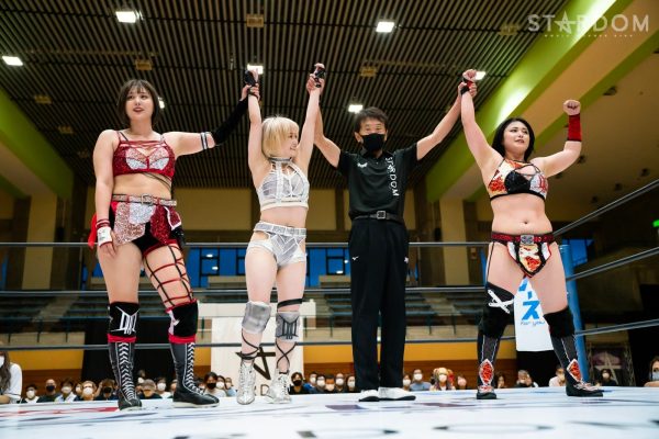 白川が先発に名乗りを挙げてMIRAIを指名。バックの取り合いでスタートし、MIRAIがヘッドロック。白川が切り返しネックロックもすぐにMIRAIがバックを取る。白川のヘッドロックを切り返してMIRAIがネックロック。白川のラリアット、エルボーをかいくぐりMIRAIがショルダータックル、ボディースラム。白川が返すとMIRAIがカバーの連続からネックロック。朱里が白川にサッカーボールキック、コーナーに追い込みストンピング連打、串刺しニーアタック。白川が返すと、朱里がもう一発サッカーボールキック。MIRAIが白川にバックエルボー。白川のエルボー連打にMIRAIもやり返す。MIRAIが連打も白川がネックブリーカードロップ。中野がMIRAIへネックブリーカー。しかし朱里が乱入しMIRAIと合体。それでも中野がまとめてDDT。MIRAIが返すと、中野が側転ダブルニー。かわしたMIRAIが前方に叩きつける。朱里が中野にドロップキック、ニーの連打、コーナーに追い込みニーアタック。中野もやり返すとバックドロップ、側転ダブルニードロップ。白川が朱里にフライングクロスチョップ、コルバタ式河津落とし。返した朱里に中野と白川が合体攻撃。白川がリバースDDTも朱里が返す。白川がエルボー連打、ローリングエルボー。朱里が投げっぱなしジャーマン、白川が延髄斬り。白川が後方からローリングエルボー、コーナーに乗せてDDT。しかし朱里の足がロープへ。白川は朱里へインプラントDDT狙い。朱里が切り返すが白川が丸め込む。返された白川はインプラントDDTの構え。しかし後方からMIRAIがカット。白川と中野がクローズラインもMIRAIがかいくぐりラリアット。MIRAIが白川を捕まえ朱里がスタンディングギロチン投下、ニーアタック。しかし中野のカットが間に合う。朱里が白川に突進も空中胴締め落としを食らう。白川が突進すると朱里がハイキック。ギリギリで白川の肩が上がる。朱里が流炎で叩きつけると白川が返せず3カウントが入った。