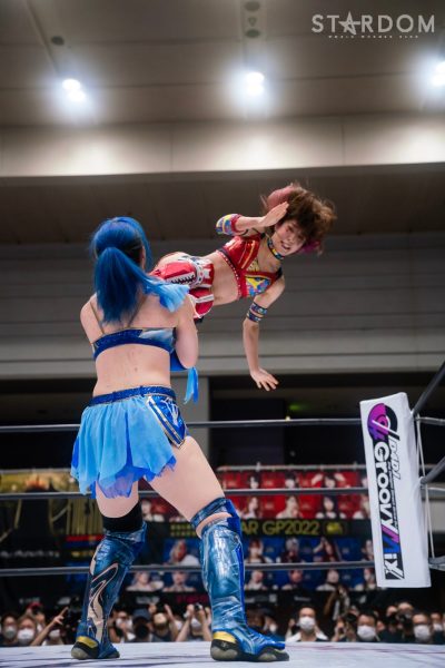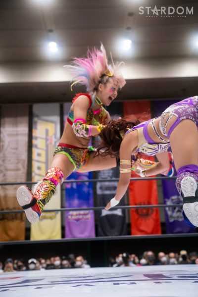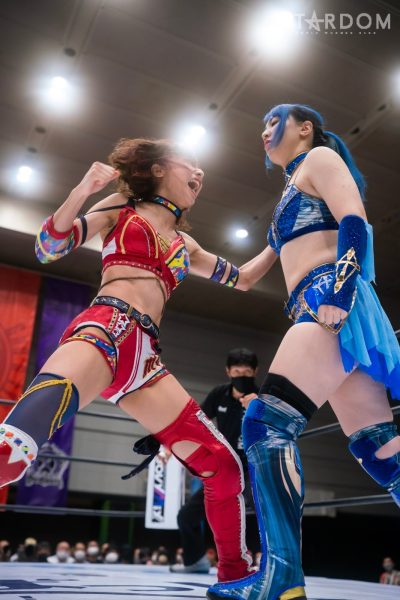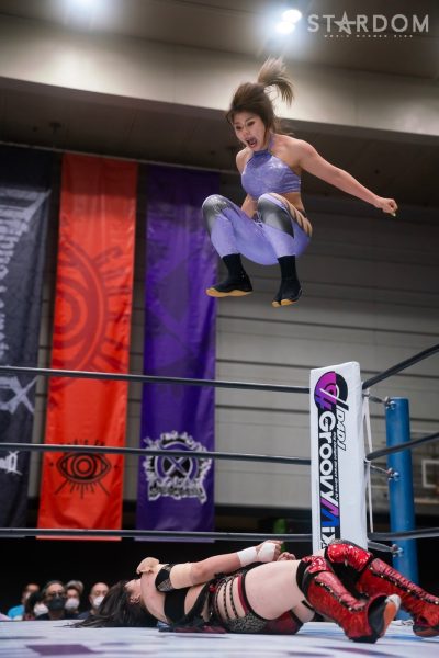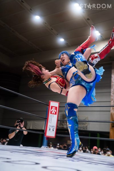 じっくりとした攻防で試合がスタート。葉月がエルボーを打つと鈴季もやり返す。葉月がロープ際の鈴季に蹴りを放つと鈴季が場外に落ちる。葉月がトペ。リングに戻すと顔面ウォッシュ。鈴季に葉月は串刺しバックエルボーからコーナーに上るも、鈴季が追いつきコーナー上でエルボーの打ち合い。鈴季が頭突き、雪崩式フランケンシュタイナー。葉月をセカンドロープに乗せてスライディング式ジャーマン。鈴季が葉月を場外に引きずり落とし鉄柱に叩きつけ、場外マットにDDT。リングに戻すとミサイルキック、串刺しニー。鈴季がエルボー。ロープに走った鈴季に葉月がコードブレイカー。鈴季がトラースキック、投げっぱなしジャーマン。葉月が二段蹴りで両者ダウン。ヒザ立ちでエルボーを打ち合う。葉月が連発。鈴季がカウンターのエルボー。さらにエルボー連打。鈴季がハーフネルソンバスターもカウント2。ジャーマンは葉月が切り返してロープ際での二段蹴り。葉月がダイビングセントーン。葉月がすずをコーナーに乗せてコードブレイカー。最後は葉月が垂直落下式ブレーンバスター決め3カウント。