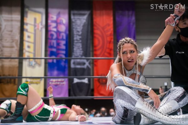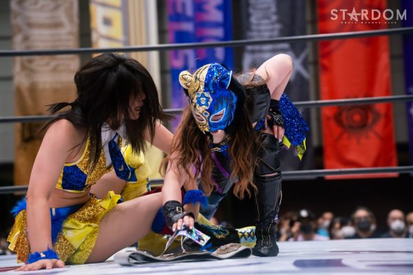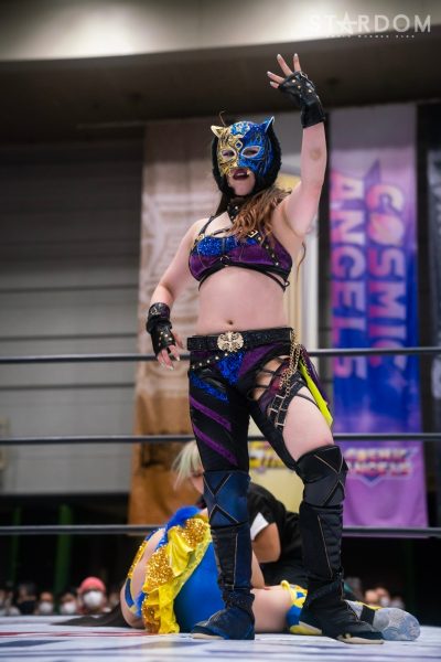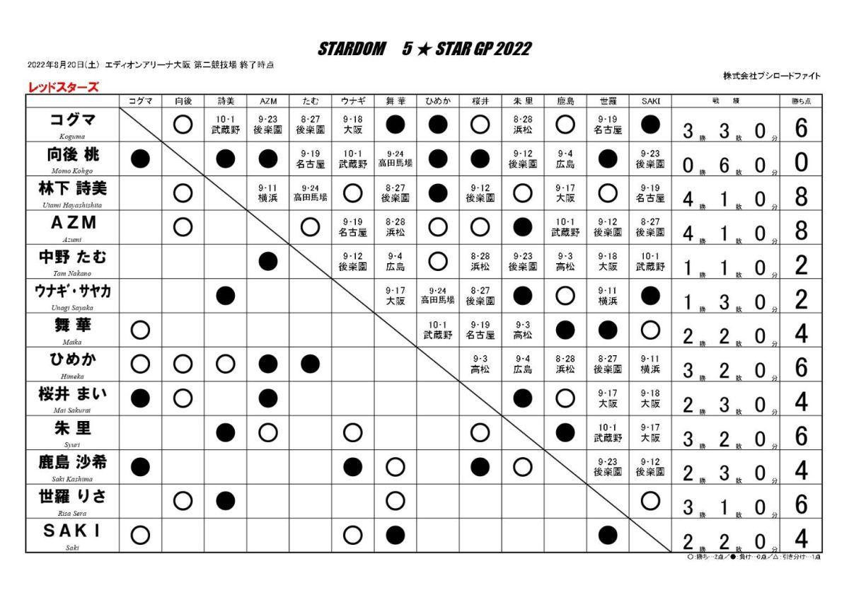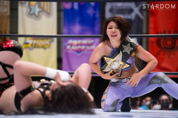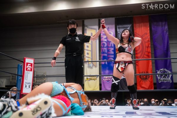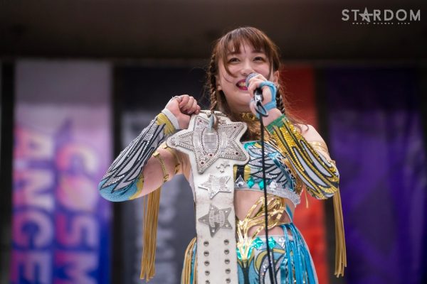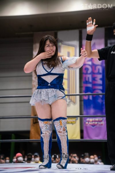 「4点獲得しました。SAKI、やっぱおまえ白いベルト挑戦しただけあるな。めちゃくちゃ追い込まれたよ。また次、やろうぜ。白いベルト…白いベルトって言ったけど、明日うちの最愛なるパートナー、ひめかが白いベルトに挑戦します。ひめかなら、あいつなら必ず白いベルトを取って私の借りを返すと、そう信じてます。明日はひめか、そしてDDM、素晴らしい日にしますので、皆さんぜひ名古屋にお越しください。次、ここ帰ってくるときは対ウナギ・サヤカ。今日いたよね。そいつにも必ず私が勝ってこの熱い熱い5★STAR優勝して、また必ず大阪に帰ってくるので、皆さんお楽しみに。それでは輝かしいその日まで大阪のみんな、さらばだ」