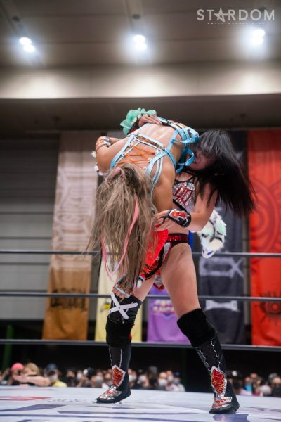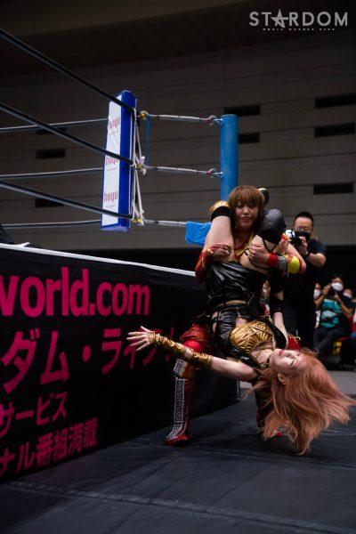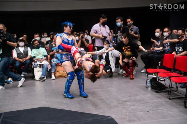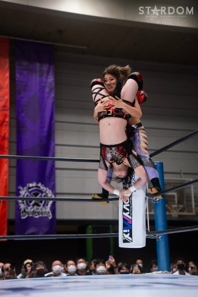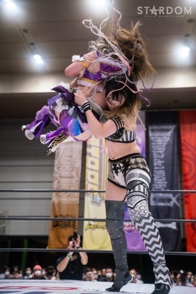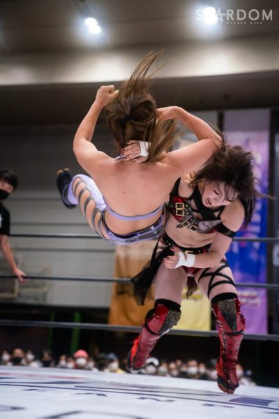 SAKIがブレーンバスターからのビッグブーツ。舞華がロックボトムからブレーンバスターの態勢になるも上がらずSAKIは腕を掴んでのビッグブーツ。しかし舞華がブレーンバスターで持ち上げる。さらにスライディングラリアット、山茶華。舞華のラリアットはSAKIが腕にキック。SAKIがカンパーナを四方に見せつける。SAKIがブレーンバスターからコーナーに上がり背中にボディプレス。舞華をトップロープに乗せるも舞華がラリアットで落とす。すぐに起き上がったSAKIが雪崩式ブレーンバスター。SAKIがコーナーに上がると舞華が追いつき、お返しの雪崩式ブレーンバスター。SAKIがビッグブーツ、舞華がパワースラム。SAKIがカウント1で返して立ち上がり突っ込んできた舞華にSAKIがビッグブーツ、舞華がラリアット。ロープに走った舞華にみちのくドライバー。走ってきたSAKIに舞華がローリングラリアット。SAKIが舞華を担いで叩きつけ、前後からビッグブーツ、ニーアタック。SAKIがランニングブレーンバスター、コーナーに上がろうとするも舞華がSAKIの足をつかみ上がらせない。しかし、SAKIは舞華の腕をつかんでのニーアタック。コーナーに上るが舞華が追いつくとトップロープからの雪崩式ブレーンバスター。舞華が炎華落としが決まるもSAKIが返す。最後はみちのくドライバーでフィニッシュ。
