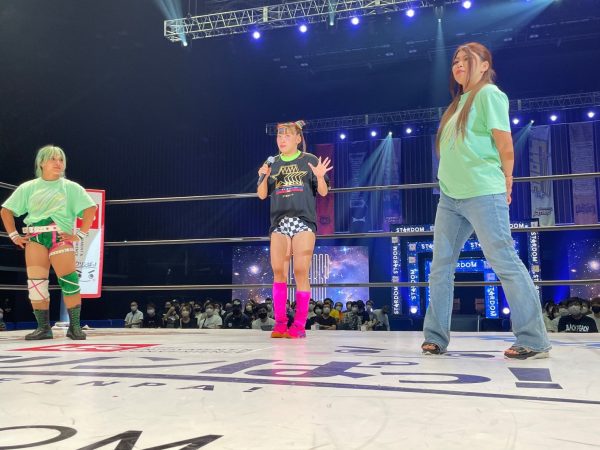 中野「ハハハ!歴代チャンピオン、そして来月から始まるタッグリーグも私たちが制覇して、過去も現在も未来もすべてにおいてナンバーワンのタッグになります。そして、ベストタッグ賞を私たちで取って、COSMIC ANGELSがベストユニット賞まで総取りにする。COSMIC ANGELSは誰か一人欠けてもコズエンじゃなくなるから、いまの5人揃って一人ひとりが…。いまの5人と連合軍のCOLOR’Sと、全員が本当に大切な、大切な存在なん…(涙)」
