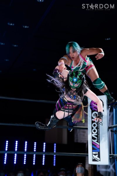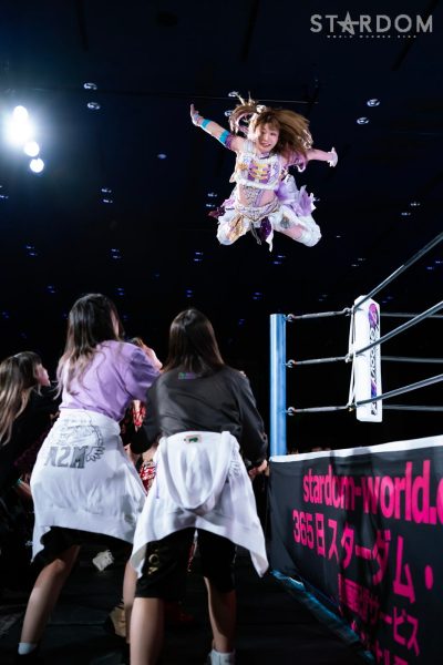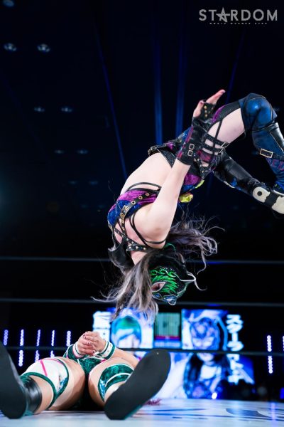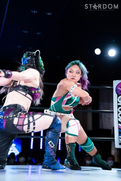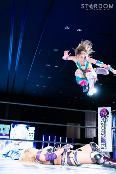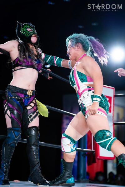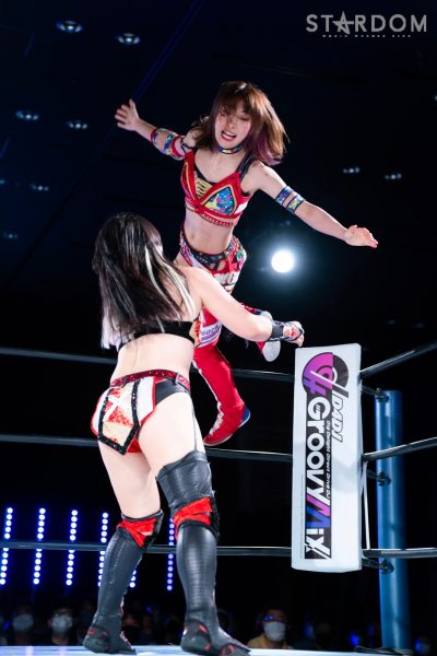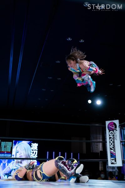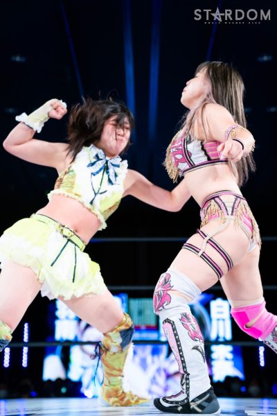 フューチャー・オブ・スターダム王座の現王者と元王者が5★STAR GP公式戦で一騎打ち。現王者は羽南だが、初の5★STAR GPエントリーでリーグ戦の壁に苦しんでおり、10戦して白星なし。リーグ戦は残り2試合で、なんとしても1勝はしておきたいところ。残るチャンスはあと2回。まずはこの試合に全力を注ぐ。一方の白川は連勝スタートもその後つまずき、優勝の可能性はすでになくなった。が、前日の後楽園では白いベルトの王者・上谷沙弥を破り、念願の白いベルト戦に向けて絶好のアピールになったと言えるだろう。それだけに現フューチャー王座を一蹴し勢いをキープしたい。優勝争いとは別に、どちらも絶対に勝利をもぎ取りたい闘いである。