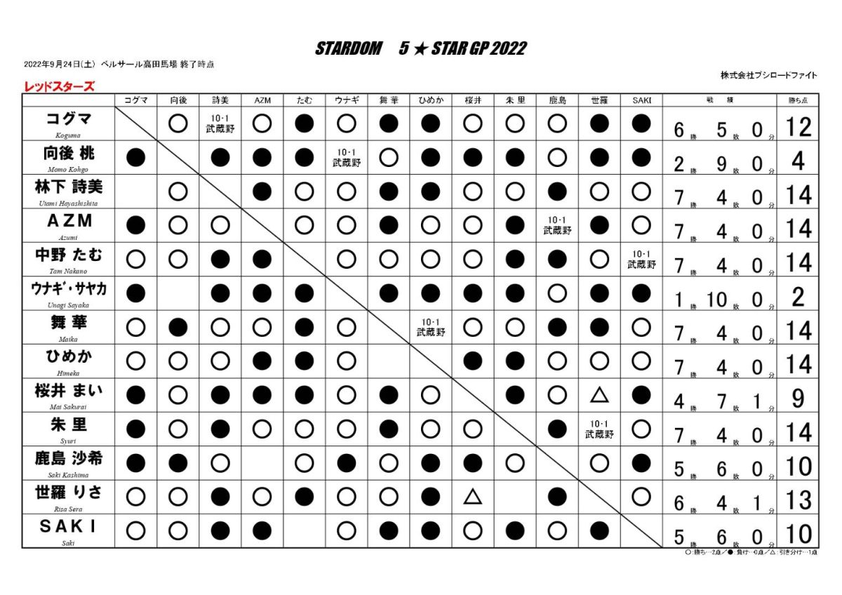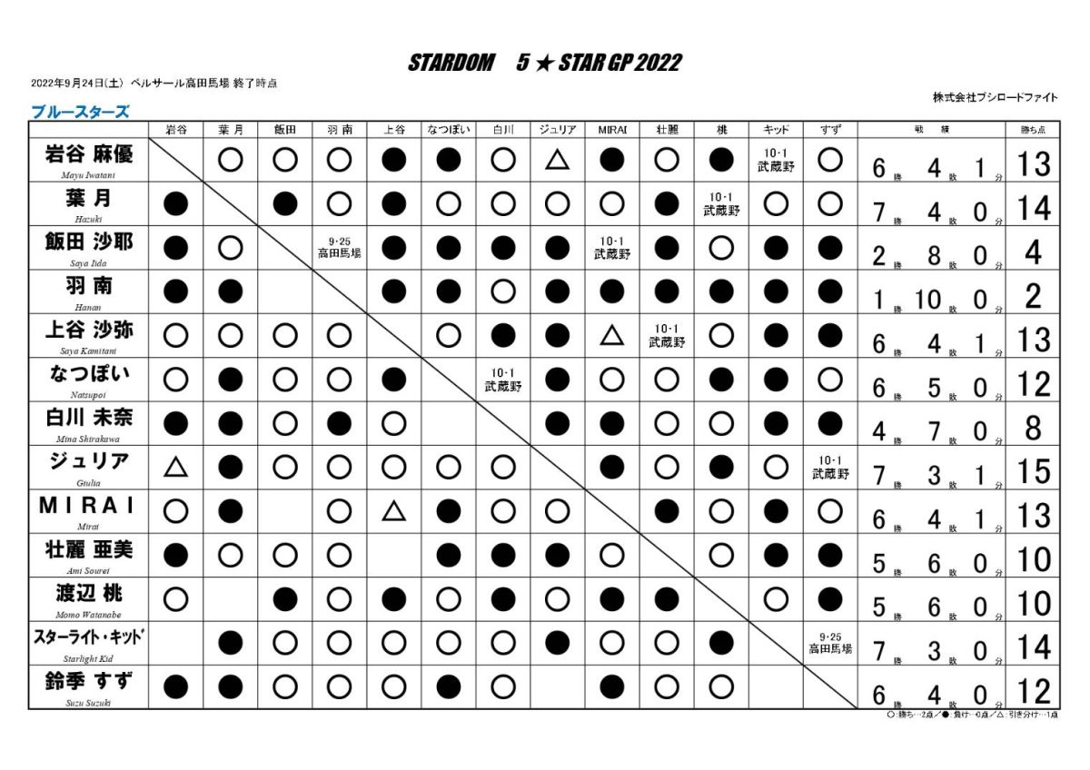 上谷沙弥とジュリアが5★STAR GP公式戦で対戦。ワンダー・オブ・スターダム王座の現王者と元王者の直接対決でもある。前日の後楽園大会では上谷が白川未奈に、ジュリアが渡辺桃に敗れ痛い黒星を喫してしまった。どちらも優勝の可能性があるだけに、前日の敗戦をこの試合で払拭したい。ともに6勝3敗1分けで、負けた方が大きく後退となるだけに、どちらも絶対に落とせない大一番だ。