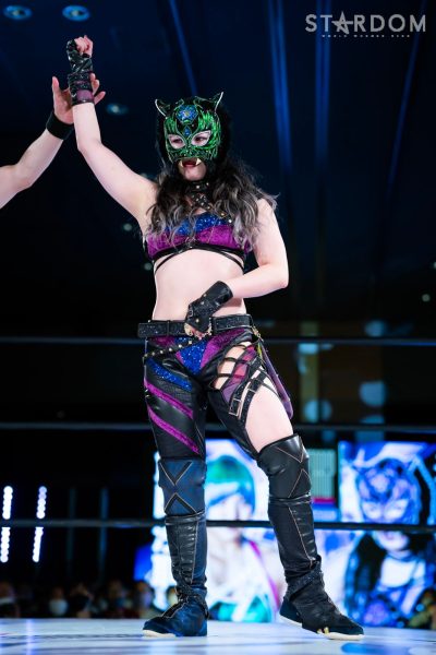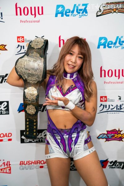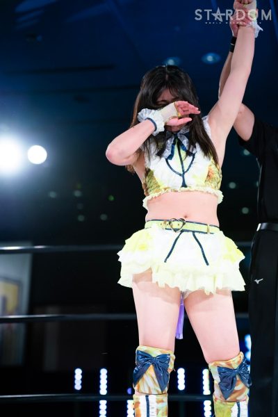 「やっと、やっと!2点、獲得しました! あと今日含めて残り2戦しかなくて、ホントに悔しくて、何もつかめずに終わるのだけは絶対嫌だったので、今日こうやって、丸め込みだったけど、スリー取れて、2点獲得できて、本当にうれしいです。白川未奈とはこれからもどんどんやり合っていきますし、私は白川未奈に言われた通り、フューチャーのベルトを壮麗亜美から守り抜きたいと思います」