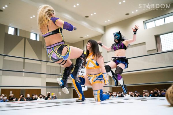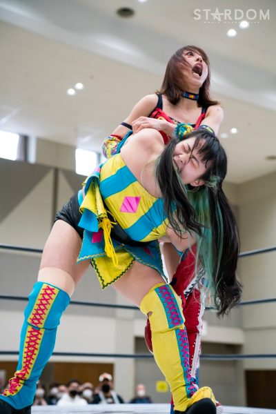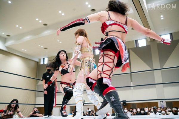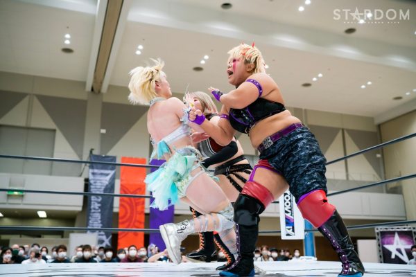 ゴッズアイの朱里&壮麗亜美組、コズミックエンジェルズの中野たむ&なつぽい組、大江戸隊の刀羅ナツコ&琉悪夏組が一度に闘う3WAYタッグマッチ。中野&なつぽいのメルティアは元ゴッデス・オブ・スターダム王者でナツコ&琉悪夏のBMI2000は2日前の後楽園大会で高橋奈七永&優宇組に挑んだばかり。ここに前ワールド・オブ・スターダム王者・朱里&現フューチャー・オブ・スターダム王者・壮麗も加わるだけに、ゴッデス王座戦線を睨んでの勝負にもなりえるカードだ。