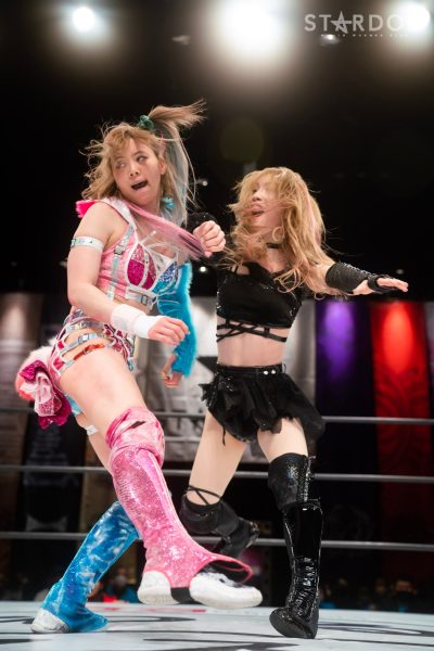 クイーンズクエストの林下詩美&上谷沙弥&AZM&天咲光由組とコズミックエンジェルズ&クラブビーナスの中野たむ&なつぽい&白川未奈&マライア・メイ組が8人タッグマッチで激突。とくに4・23横浜アリーナでのワンダー・オブ・スターダム王座戦が決まっている上谷と白川には前哨戦だ。3・10後楽園での前哨戦第1ラウンドでは6人タッグで時間切れ引き分け。今回の第2ラウンドではどんな結果が出るか。白いベルト戦に向けて展開される駆け引きが注目される。