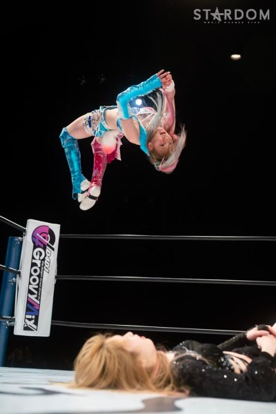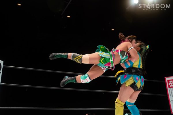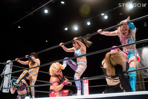 AZMと中野の先発でスタート。AZMがロープワークに誘い、その場でボディープレス。QQが乱入し連係で攻撃。中野が返すとなつぽいが入ってダブルのネックブリーカー。AZMが返すと、中野がネックロック。なつぽいがAZMの後方からドロップキック。AZMが返すとなつぽいはボディースラムで叩きつける。マライアがAZMを捕獲し白川と蹴りの連係、ドロップキックで挟み撃ち。マライアがAZMをキャッチし旋回式バックブリーカー。返したAZMがドロップキック。詩美がマライアにショルダータックル、乱入の中野をキャッチしバックフリップ、マライアと中野にまとめてラリアット。マライアが返すと、詩美は串刺しで突進。マライアがかわしてミサイルキック。白川がタッチを申し出るが詩美がマライアを捕獲しバックを取る。マライアがダブルアームスープレックスを決めて白川にタッチ。白川は詩美にコルバタ式河津落とし。詩美が返すと、白川がエルボー。DDT狙いを詩美が切り返しサイドスラム。上谷がスワンダイブで飛ぶと白川がかわす。かわし合いから白川が側転を入れてドロップキック。5分経過。白川がエルボーを打つと上谷もやり返す。エルボーの打ち合いから上谷の連打で白川がダウンもカウンターのローリングエルボー。上谷が返すと串刺しを狙うが白川がエプロンに出てエルボー、リバースDDT。上谷が返すと白川はグラマラスドライバーMINAの構え。上谷がこらえてAZMがハイキック、詩美もつづき、上谷がニールキック。白川が返すと、上谷がフィッシャーマンもコズエンがカット。上谷が白川を引き起こしスピンキック。白川がかわすが上谷がもう一度トライしてヒット。上谷に白川は「いかせるか!」と走らせずにエルボーを打ち込む。両者ダウンしパートナーにタッチ。なつぽいが天咲にドロップキック。低空ドロップキックを天咲がかわすと上谷がスワンダイブ式プランチャで場外へ飛ぶ。なつぽいが戻され詩美がボディースラム、AZMがダイビングフットスタンプ、詩美とAZMで挟み撃ちし天咲がDDT。なつぽいが返すと、天咲はヒザ十字、スイングDDT。10分経過。天咲がなつぽいに天聖を狙う。なつぽいがこらえると上谷を呼び込む。上谷と天咲がクローズラインも中野がボディーアタックでカット。白川が天咲にドロップキック、なつぽいがジャックナイフ式エビ固め。天咲が返すとなつぽいがバックを取る。メルティアがジャーマンで競演。なつぽいが天咲にフィニッシュを予告する。天咲がこらえるとなつぽいがトラースキック。天咲が返すと天橋立で丸め込む。中野がカットするとメルティアがトラースキックの挟み撃ち。なつぽいがフェアリアルギフトで舞い、3カウントが入った。