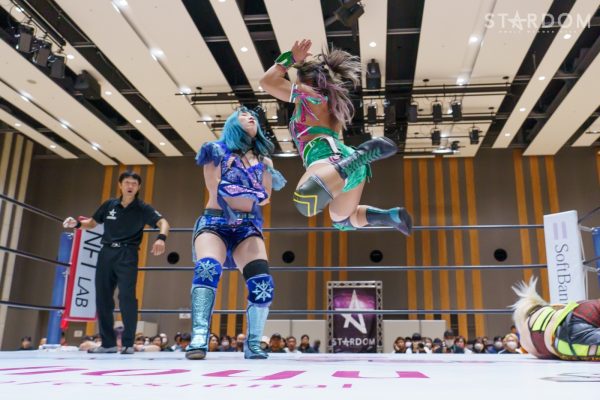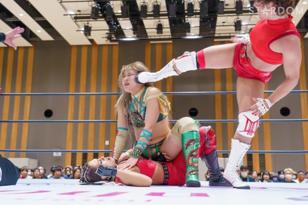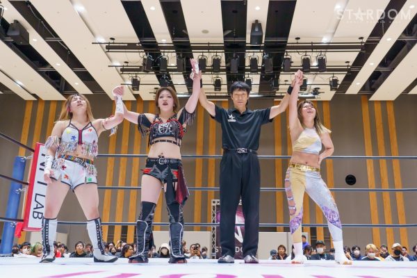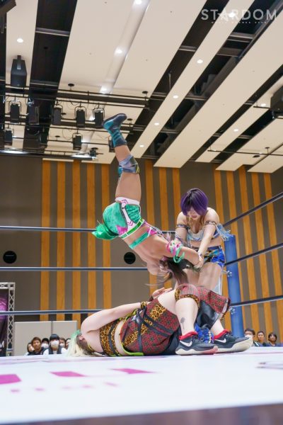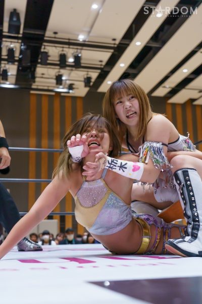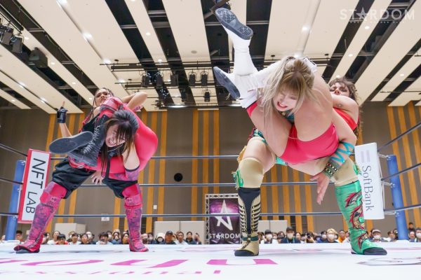 鈴季と星来がいっせいに葉月に襲いかかる。ロープワークの攻防から葉月がまとめてドロップキックで吹っ飛ばす。ロープに追い込むと顔面ウォッシュを交互に見舞う。鈴季が場外に転落すると葉月は星来を捕まえてもう一度顔面ウォッシュを決めてみせる。葉月は星来の手を引いてカバー。星来が返すが葉月がセントーンからフェースロック。鈴季が割って入るが葉月がまとめて串刺し攻撃、ドロップキック。葉月は星来の顔面を何度も蹴飛ばす。星来がエルボーで向かっていくと、葉月は「きかねえぞ」とやり返す。さらに星来がエルボー連打も葉月がビッグブーツ一発で吹っ飛ばす。星来が葉月に丸め込みからクロスボディー、鈴季を呼び込み連係で攻め込む。ダブルのドロップキックも決め鈴季がハイタッチを求めると星来が攻撃。鈴季はエプロンに出されるとトップロープに顔面を叩きつけリング下からドロップキックを星来に放つ。星来が鈴季の突進をかわして丸め込み。かわし合いから両者の打撃がヒットしダウン。葉月が入ってくるが星来と鈴季がダブルでドロップキック。鈴季が葉月のバックを取り星来がコーナーからコードブレイカー。しかし葉月がかわして鈴季に決まる。葉月は2人を場外に出してトペスイシーダ。葉月は鈴季を抱え上げてサイドに叩きつけるとビッグブーツ。鈴季が返すと葉月はフェースロック。鈴季がエスケープすると、葉月はエルボーに「もっとこいよ!」。鈴季がさらにエルボーを連打し、葉月と打ち合う。葉月がブレーンバスター、串刺しエルボーアタック、コードブレイカー。しかし星来のカットが成功。星来が葉月にドロップキック連打。葉月が返すと生来は変型キャメルクラッチでギブアップを迫る。葉月がなんとかエスケープし10分経過。星来がフィニッシュを予告してコーナーに上がる。葉月が追いつき下からエルボー連打、コーナーに上がると雪崩式狙い。そこへ鈴季が入ってジャーマン。葉月がすぐに立ち上がりビッグブーツ。3人がダウン状態も、8カウントで立ち上がりエルボーを打ち合う。葉月と星来が共闘状態で鈴季にエルボー連打。ともにロープに振るが葉月が星来を丸め込む。鈴季が丸め込むと葉月が切り返す。まとめて星来が丸め込むが2カウント。葉月が星来と鈴季をまとめて丸め込む。鈴季が葉月のバックを取り星来がコードブレイカー、星来が流れ星も鈴季がカット。星来が鈴季と丸め込みの応酬。残り1分。星来がコーナーに飛び乗ると鈴季が転落させ葉月の顔面を蹴り上げる。葉月がカバーするが鈴季が返してテキーラショット。しかし星来のカットが間に合う。残り30秒。鈴季が葉月にジャーマン狙い。葉月が丸め込むと星来がドロップキック。星来が鈴季、葉月がまとめて丸め込もうとしたところでタイムアップのゴングとなった。