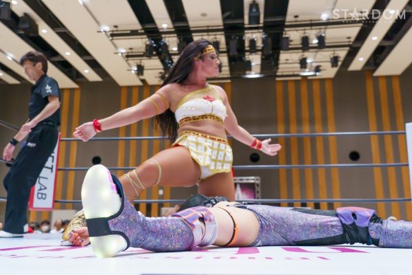 メーガン「今日はマイサクライ、ミライとの試合。タフだった。が、私たちの方がよりタフだった。今日はなんとしても勝たなければならなかった。明日の決勝戦に進むためにね。私にとって初めてのジャパン、初めてのスターダム、そして初めてのタッグリーグ戦。敗者としては帰らない」