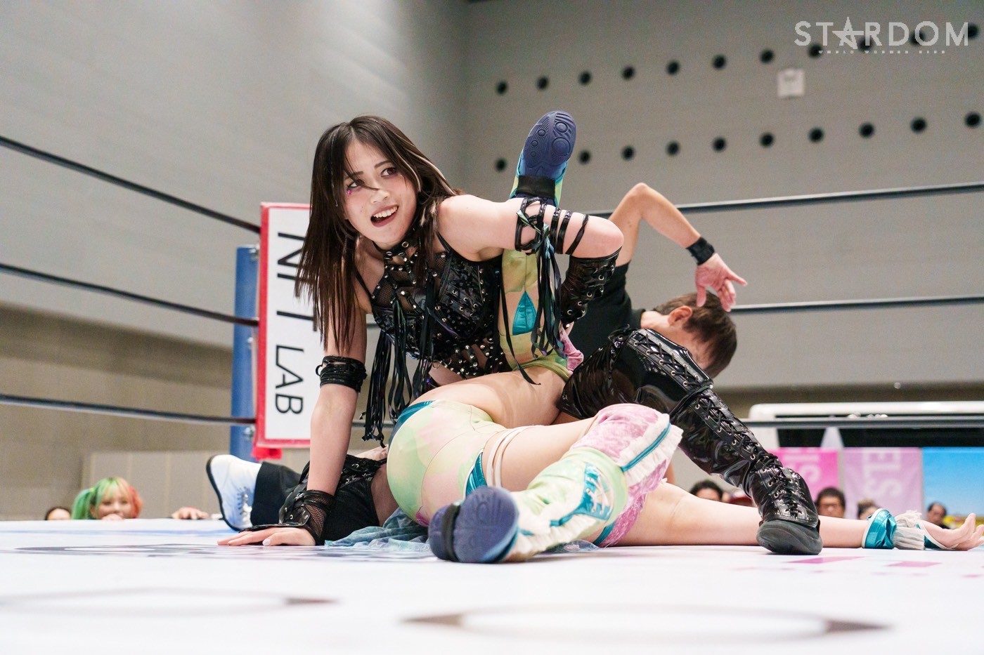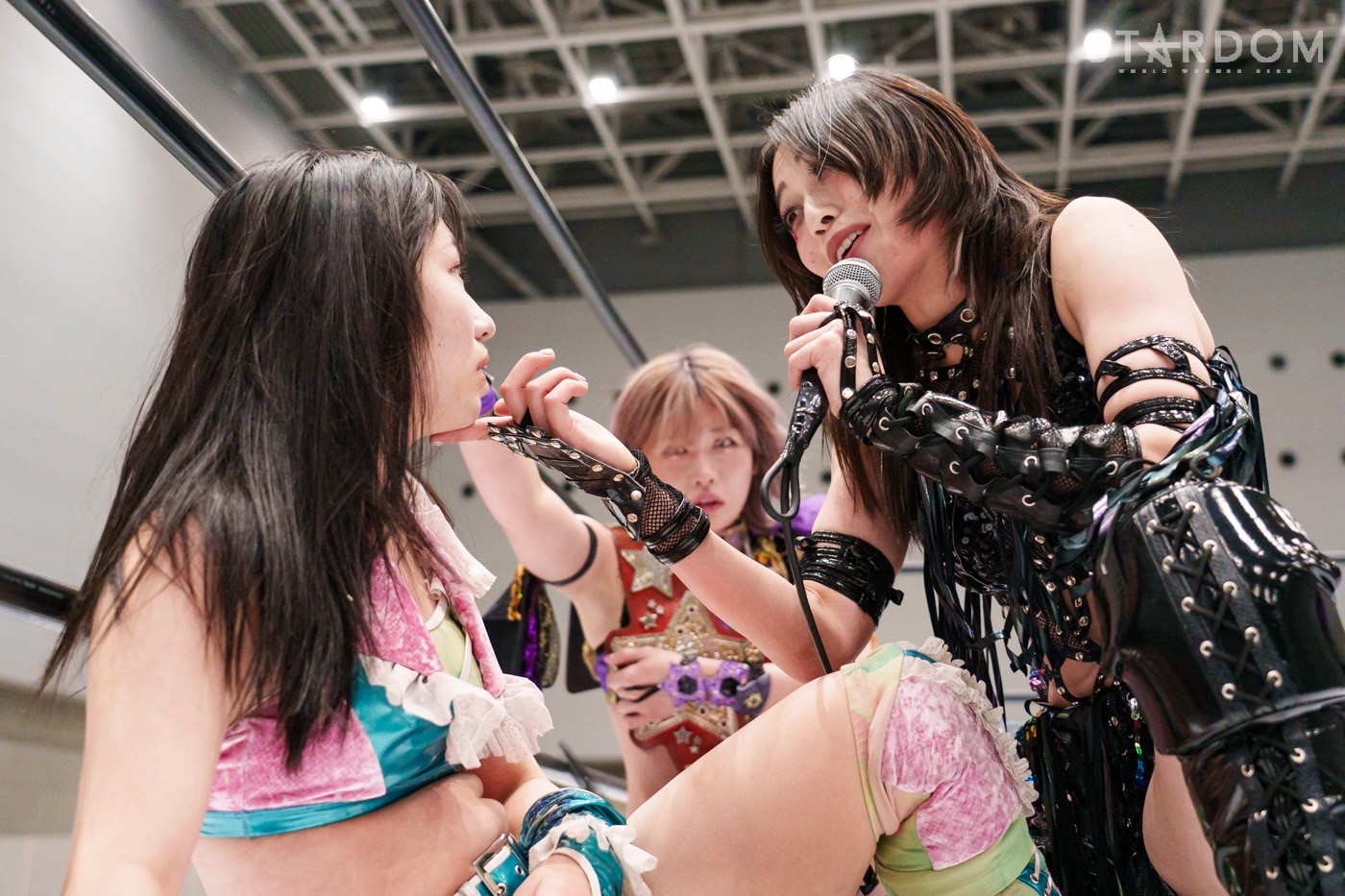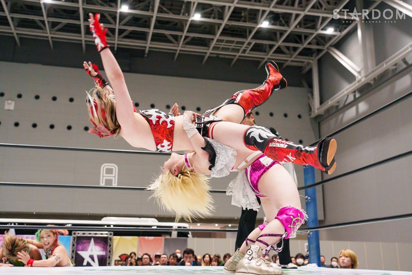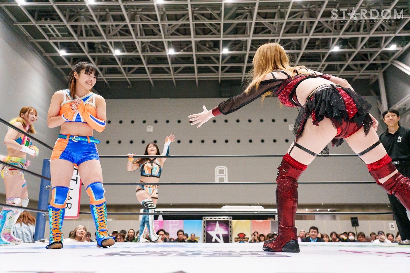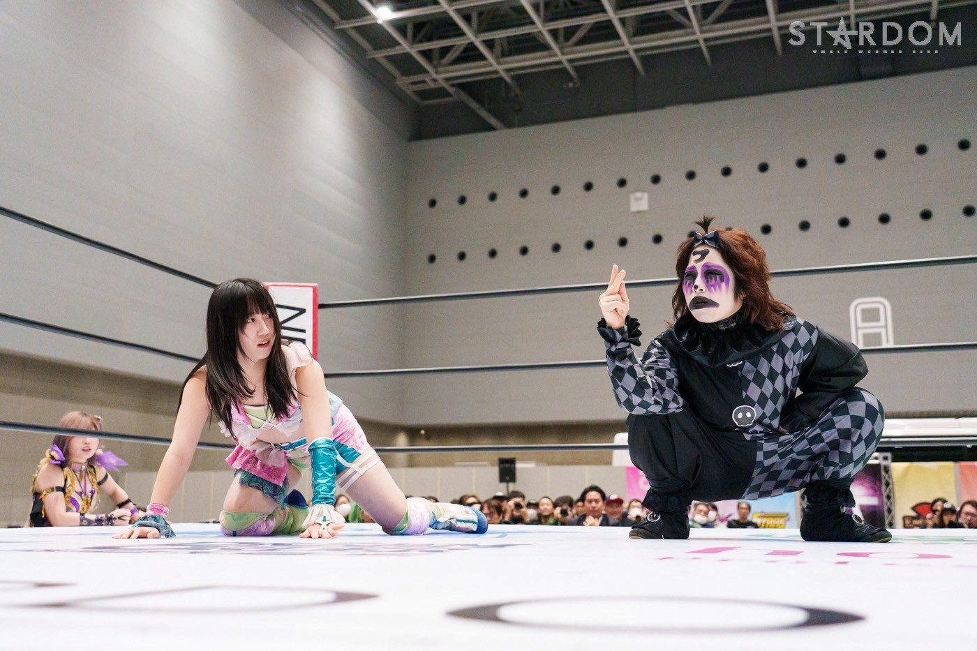 コズミックエンジェルズの安納サオリ&さくらあや組とゴッズアイのレディ・C&八神蘭奈組がタッグマッチで対戦。さくら、レディ&八神による新世代の闘いを安納が引っ張るか?