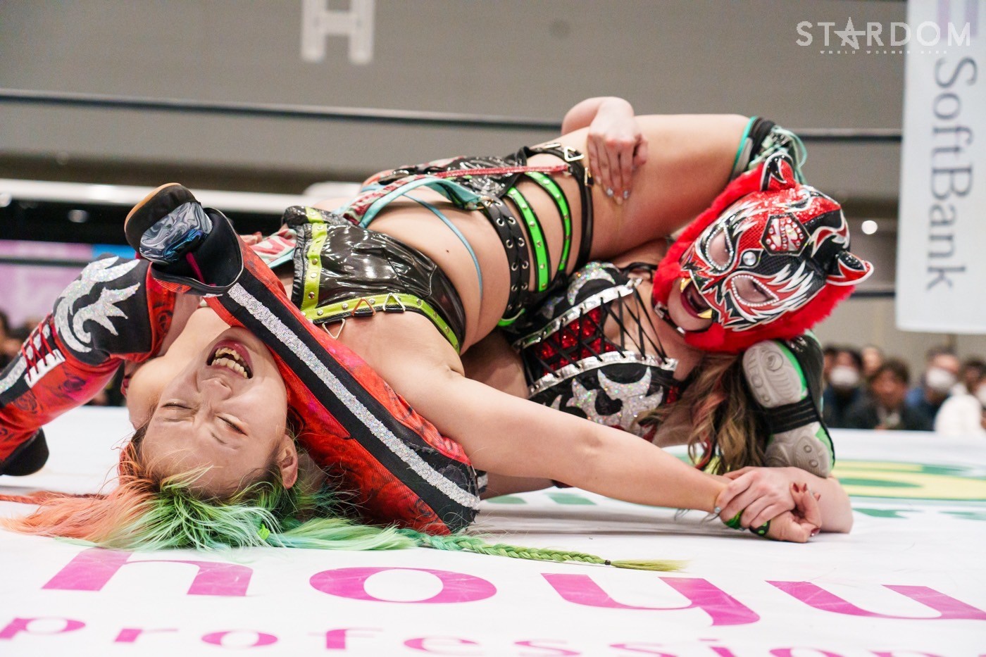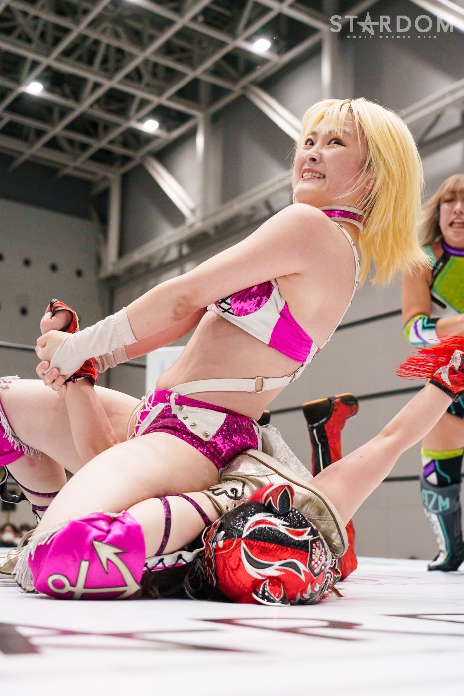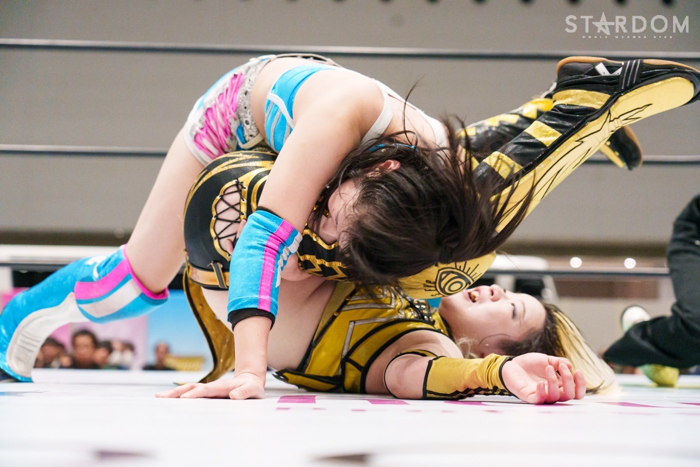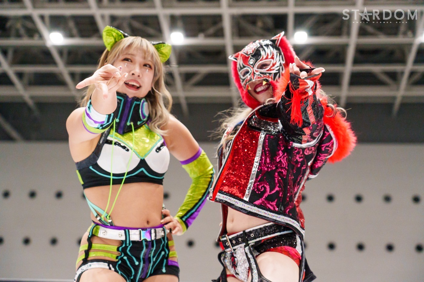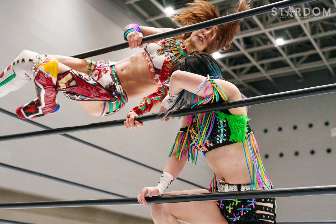 コズミックエンジェルズの安納サオリ&さくらあや組とゴッズアイのレディ・C&八神蘭奈組がタッグマッチで対戦。さくら、レディ&八神による新世代の闘いを安納が引っ張るか?