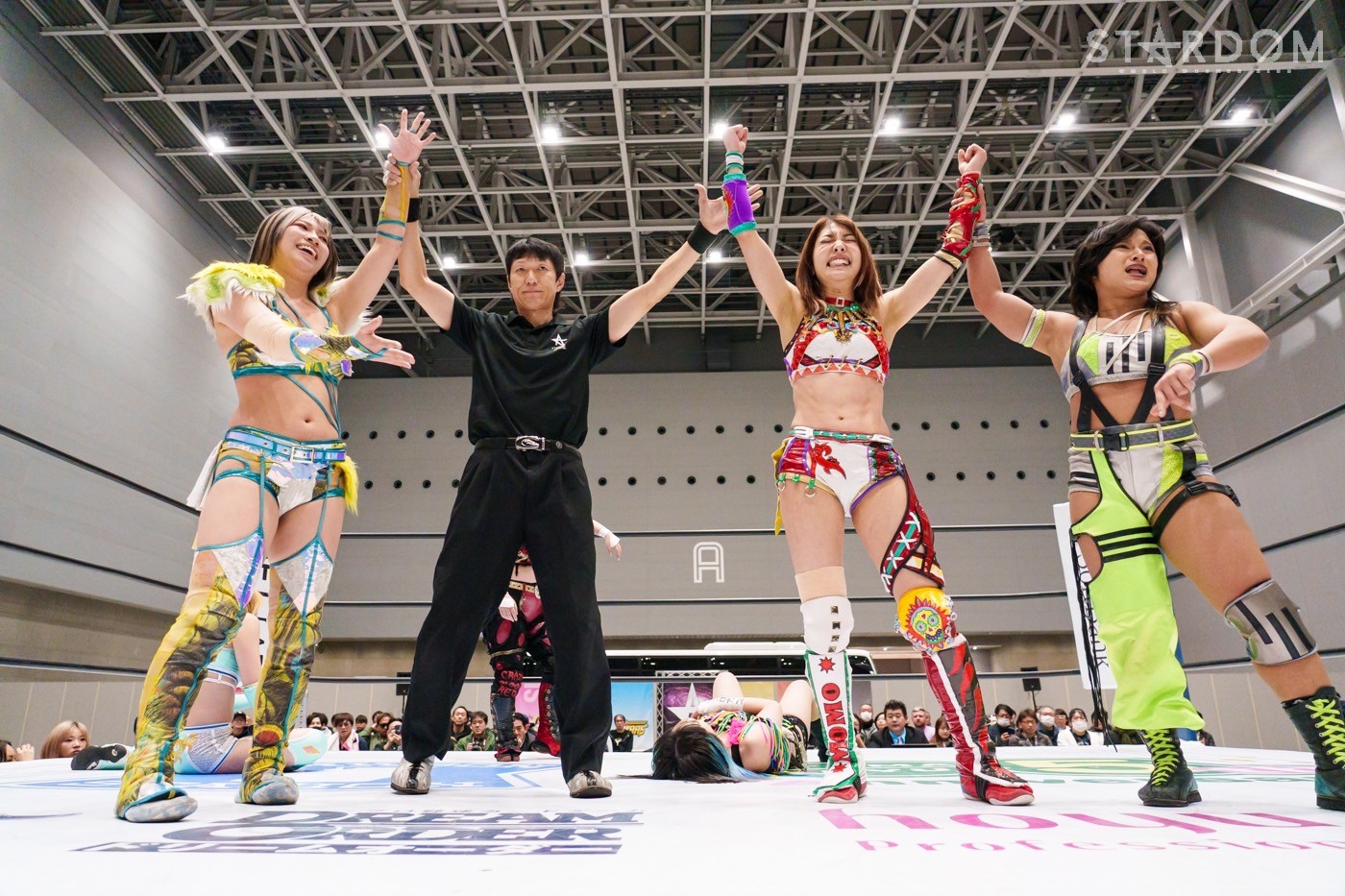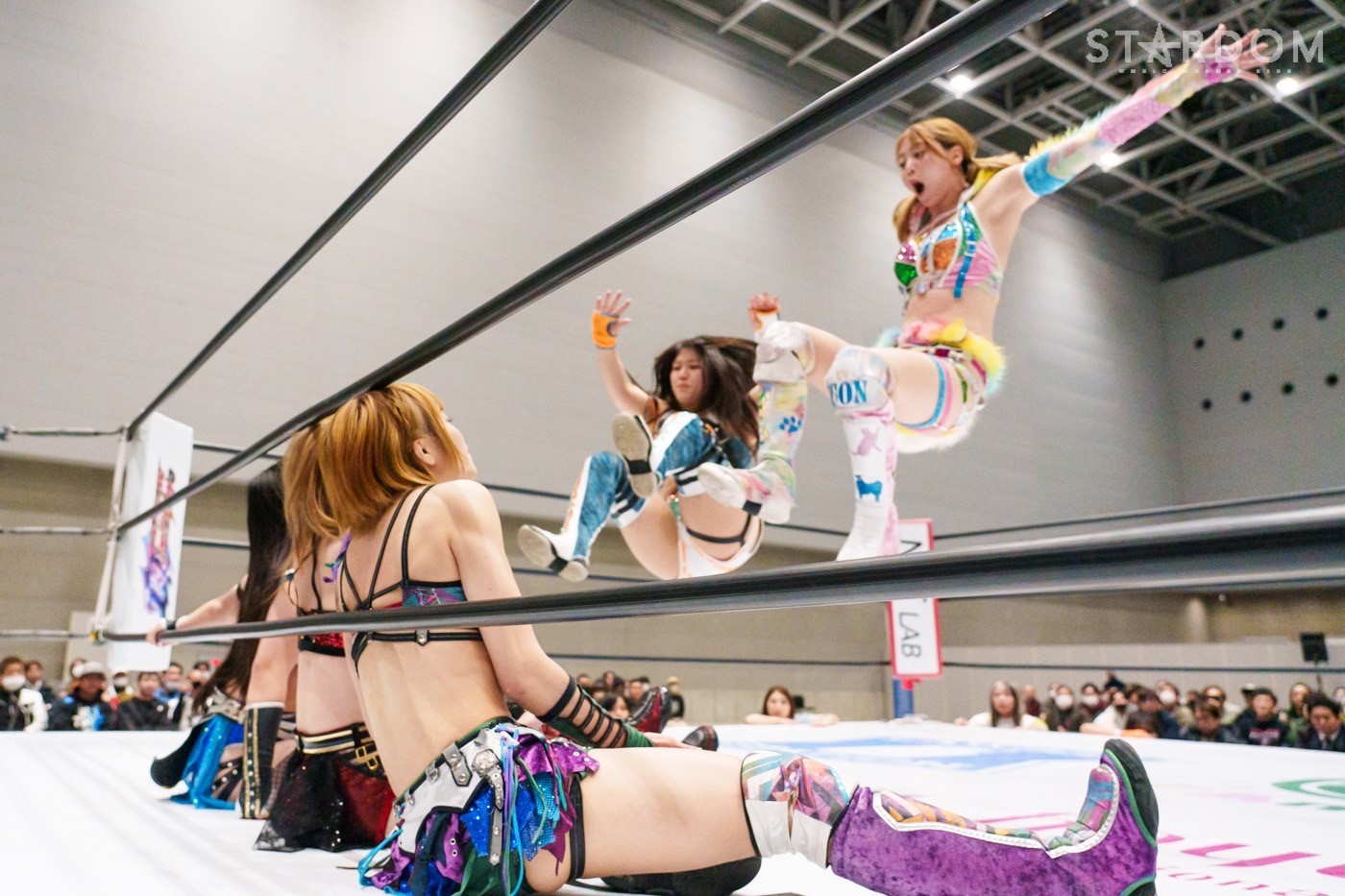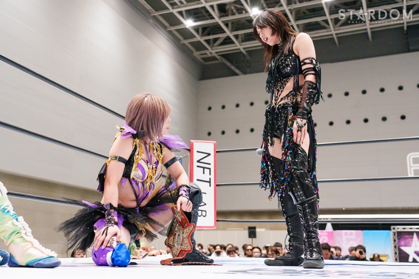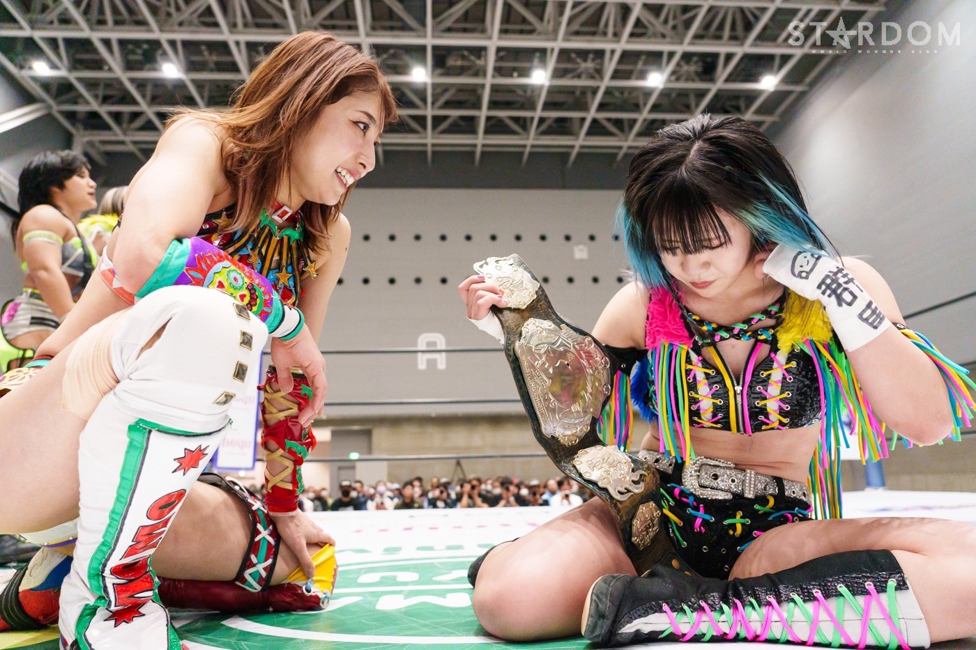 飯田と鈴季の先発でスタート。ロックアップから飯田がヘッドロック。ロープに振ると見せかけ鈴季が髪をつかむが飯田がチョップをぶち込む。「いてえ」とつぶやいた鈴季がチョップの応酬を申し込む。両者とも後ろで手を組んで相手のチョップを受けて立つ。鈴季がかわしてエルボーも飯田がカウンターの逆水平、星来が入って鈴季と連係、ドロップキックの競演。鈴季は飯田をサードロープに乗せてリング下から顔面蹴り。天咲が飯田にドロップキック、DDT狙いを飯田がかわしてショルダータックル。向後が天咲にボディースラムの連発。羽南が天咲の背中にニーアタックとドロップキック、スリーパー。天咲のエルボー連打に羽南は「もっとこいよ!」と挑発。羽南が一発で倒すが、天咲が羽南の動きを読んでDDTを決める。星来が羽南にラリアット、向後が突進をカット。羽南と向後がクローズライン。星来がかわすと、まとめてドロップキック。羽南が返すと、星来の突進に羽南と飯田がジャンピングチョップ、バックエルボーの挟み撃ち。羽南と星来がエルボーの応酬。羽南の挑発に星来が連打。羽南がエルボー、ドロップキック。向後が星来へ串刺しドロップキック。向後と星来が蹴りをかわし合い、向後のドロップキックがヒット。向後は619もヒットさせるが、星来が返す。ネオジェネが乱入し次々と串刺し攻撃、3方向からドロップキック。星来が向後へブレーンバスター。星来と鈴季が合体を試みるが羽南が阻止、向後が鈴季にトラースキック。STARSが星来を捕獲し合体フェースクラッシャー。向後が星来にネックブリーカー。星来が返すと、向後はフィニッシュを宣言してネクターピーチを狙う。星来が切り返すが向後も切り返す。星来の流れ星もSTARSがカット。10分経過。向後がトラースキック、星来がドロップキック。飯田がラリアットで星来を止めて向後がスイングDDT。向後が押さえ込むと3カウントが入った。試合後、向後の視線は星来のベルト。星来はベルトを誇示してリングを下りた。