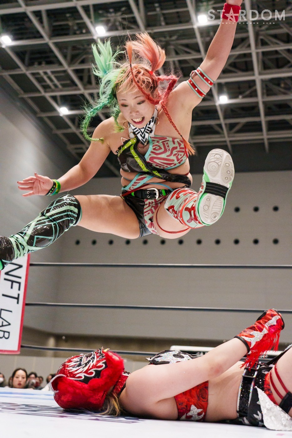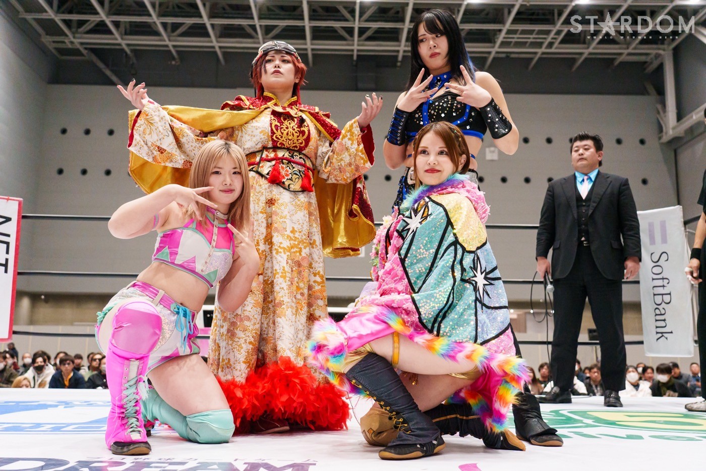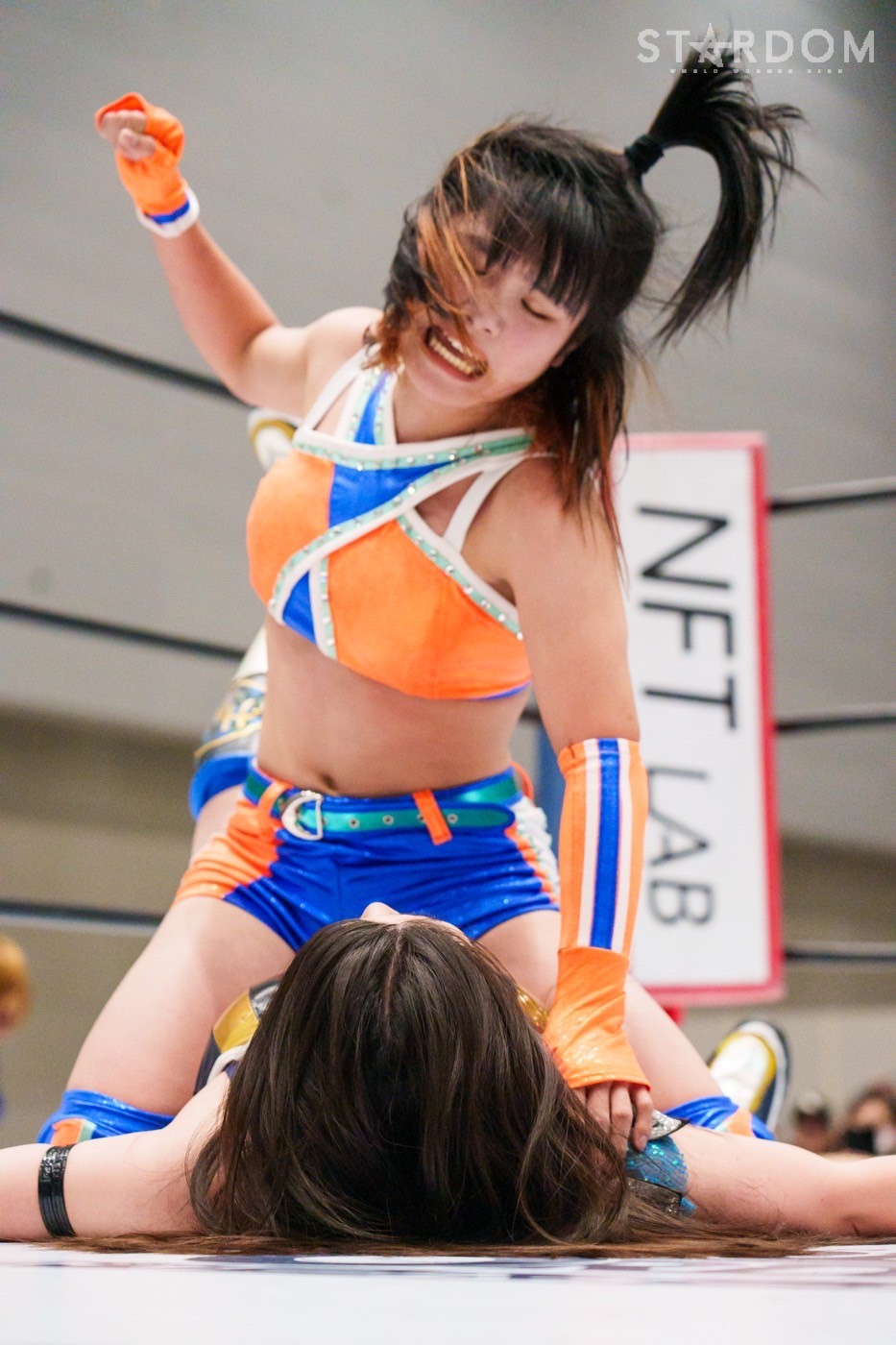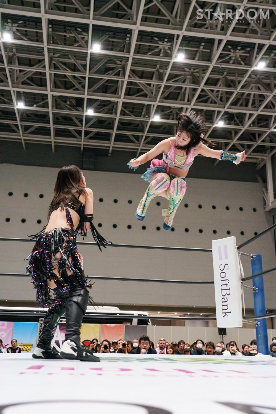 飯田と鈴季の先発でスタート。ロックアップから飯田がヘッドロック。ロープに振ると見せかけ鈴季が髪をつかむが飯田がチョップをぶち込む。「いてえ」とつぶやいた鈴季がチョップの応酬を申し込む。両者とも後ろで手を組んで相手のチョップを受けて立つ。鈴季がかわしてエルボーも飯田がカウンターの逆水平、星来が入って鈴季と連係、ドロップキックの競演。鈴季は飯田をサードロープに乗せてリング下から顔面蹴り。天咲が飯田にドロップキック、DDT狙いを飯田がかわしてショルダータックル。向後が天咲にボディースラムの連発。羽南が天咲の背中にニーアタックとドロップキック、スリーパー。天咲のエルボー連打に羽南は「もっとこいよ!」と挑発。羽南が一発で倒すが、天咲が羽南の動きを読んでDDTを決める。星来が羽南にラリアット、向後が突進をカット。羽南と向後がクローズライン。星来がかわすと、まとめてドロップキック。羽南が返すと、星来の突進に羽南と飯田がジャンピングチョップ、バックエルボーの挟み撃ち。羽南と星来がエルボーの応酬。羽南の挑発に星来が連打。羽南がエルボー、ドロップキック。向後が星来へ串刺しドロップキック。向後と星来が蹴りをかわし合い、向後のドロップキックがヒット。向後は619もヒットさせるが、星来が返す。ネオジェネが乱入し次々と串刺し攻撃、3方向からドロップキック。星来が向後へブレーンバスター。星来と鈴季が合体を試みるが羽南が阻止、向後が鈴季にトラースキック。STARSが星来を捕獲し合体フェースクラッシャー。向後が星来にネックブリーカー。星来が返すと、向後はフィニッシュを宣言してネクターピーチを狙う。星来が切り返すが向後も切り返す。星来の流れ星もSTARSがカット。10分経過。向後がトラースキック、星来がドロップキック。飯田がラリアットで星来を止めて向後がスイングDDT。向後が押さえ込むと3カウントが入った。試合後、向後の視線は星来のベルト。星来はベルトを誇示してリングを下りた。