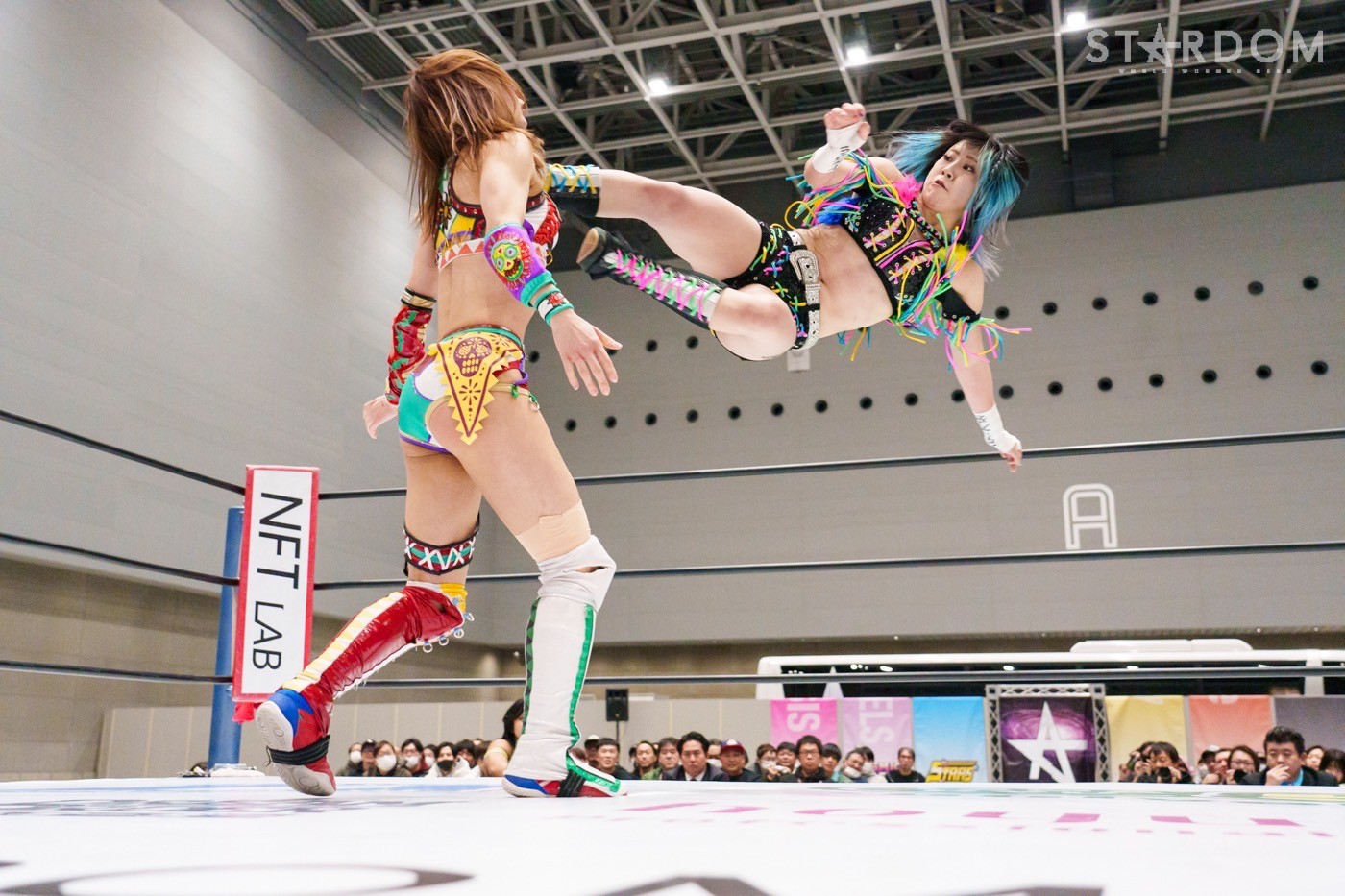 E neXus Vの舞華&月山和香&HANAKO&梨杏組とH.A.T.E.の刀羅ナツコ&渡辺桃&小波&吏南組が8人タッグマッチで全面対決。EXVの舞華&HANAKOはゴッデス・オブ・スターダムタッグリーグ戦で準優勝。決勝トーナメントではナツコ&琉悪夏組を破っている。そして決まった舞華とナツコの一騎打ち。12・29両国に向けての前哨戦だ。