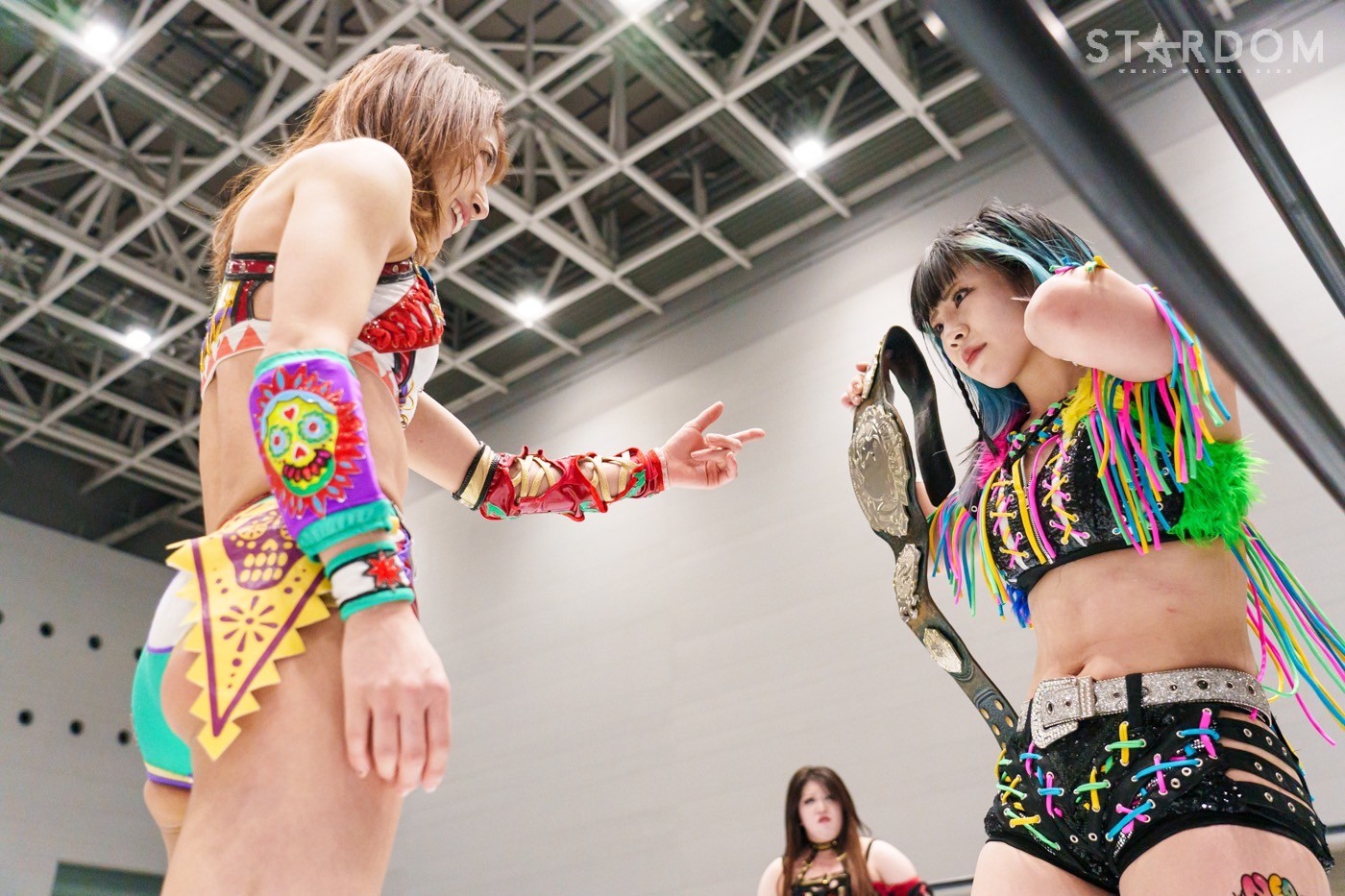 コズミックエンジェルズの中野たむ&玖麗さやか組とH.A.T.E.の上谷沙弥&フキゲンです★組がタッグマッチで激突。ワールド・オブ・スターダム王座戦が決まっている中野と上谷は12・29両国に向けての前哨戦。翌日の佐久大会でも両者の対戦が予定されており、2日間連続の前哨戦となる。12・8浜松での前哨戦では上谷が中野を直接フォールしているが…。中野のパートナーはタッグリーグ戦でも組んだ玖麗。上谷との因縁もあるだけに注目のタッグマッチだ。