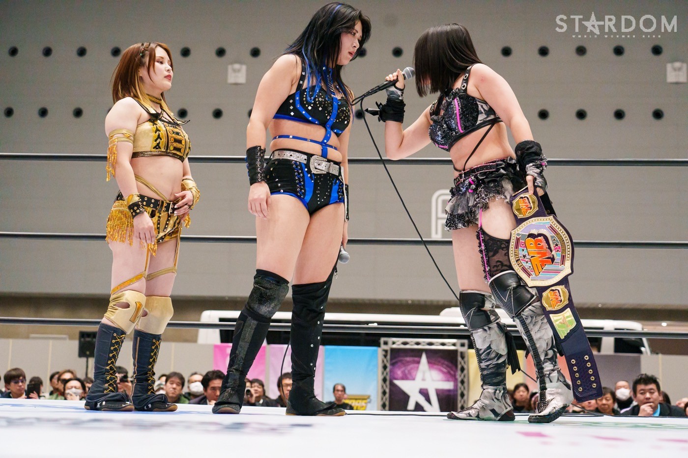 HANAKO「ってことで、NEW BLOODタッグのベルト取って群馬に帰ってくるので待っといてください。想像を超えた世界へ、E neXus Vイズヒアー!」