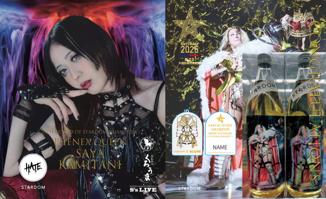 11月3日(月祝)大田区体育館ワールド・オブ・スターダム&STRONG女子ダブル選手権 上谷沙弥VS渡辺桃応援記念ボトルとして、「上谷沙弥 応援ボトル」「渡辺桃・5☆STAR GP2025優勝記念ボトル」会場限定発売!