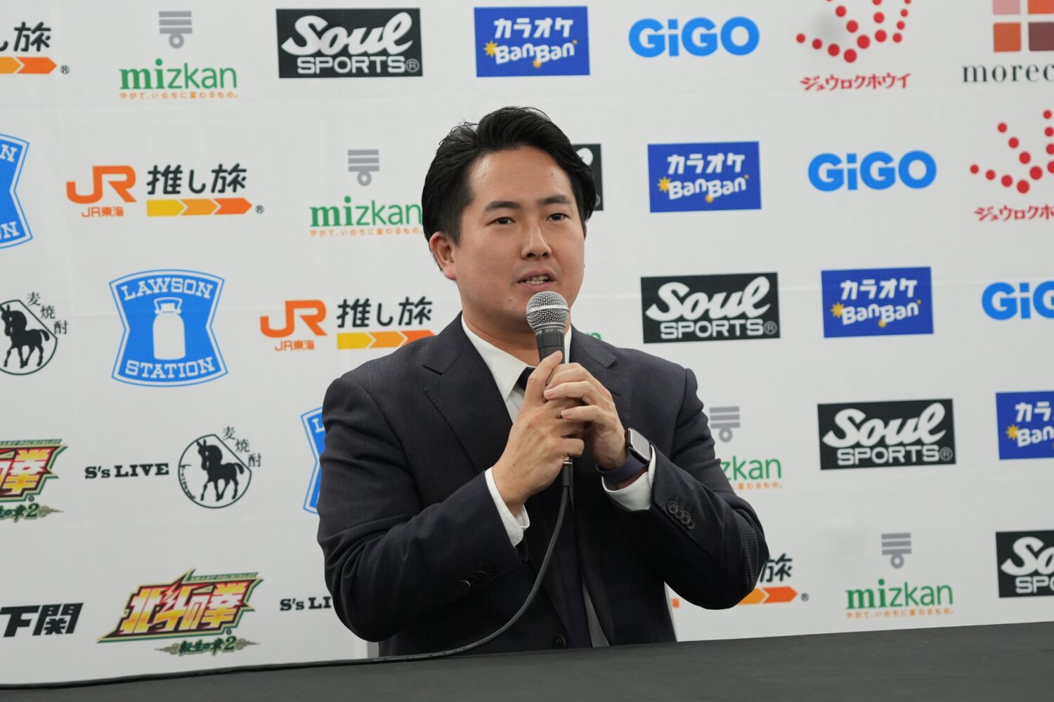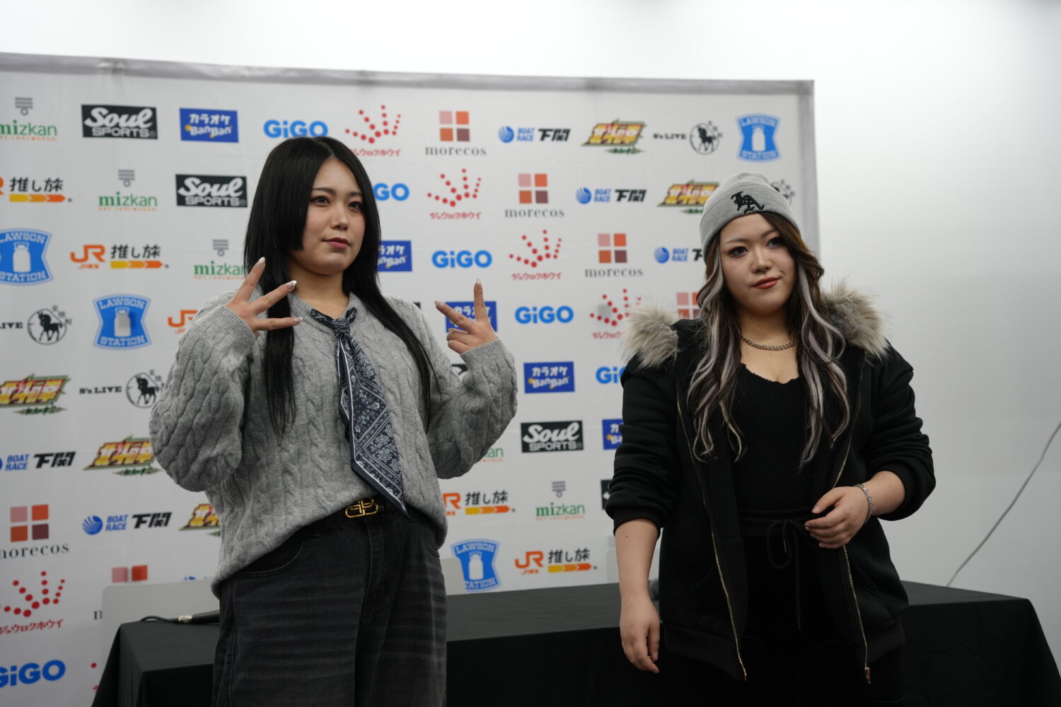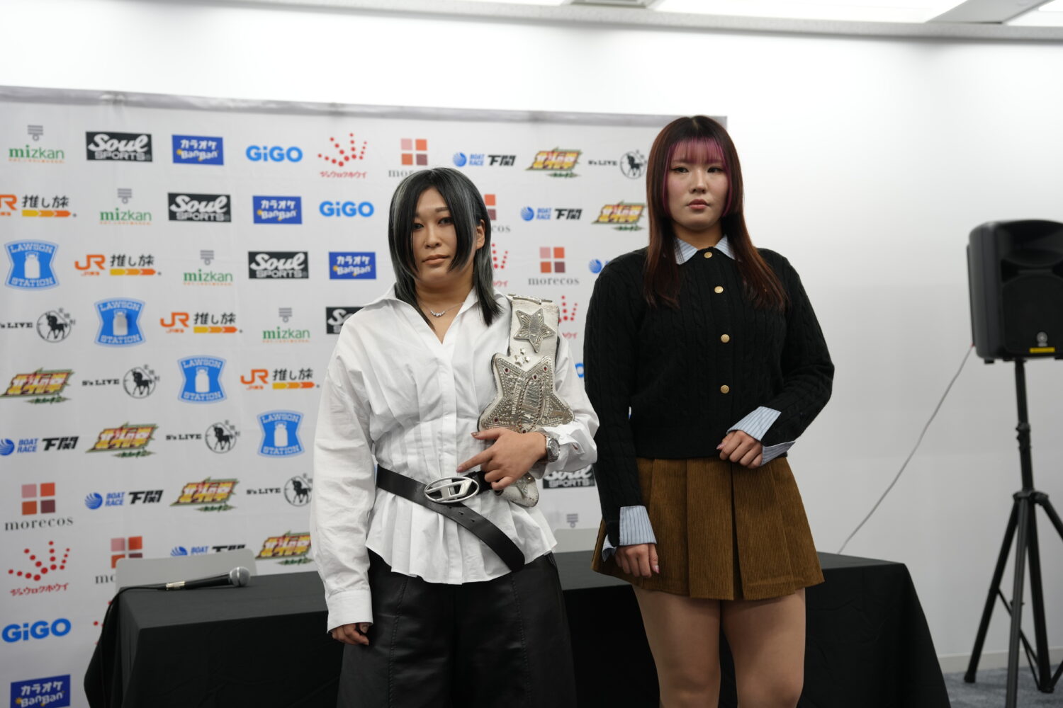 会見冒頭で岡田太郎社長が、新人最強を決める「ルーキー・オブ・スターダム」について説明。当初は1~2月での開催を予定していたが、年末年始にかけて儛島エマと浜辺纏が負傷離脱したことから延期とするという。同社長は「お二人の状況を見つつ発表させていただきます」と約束した。