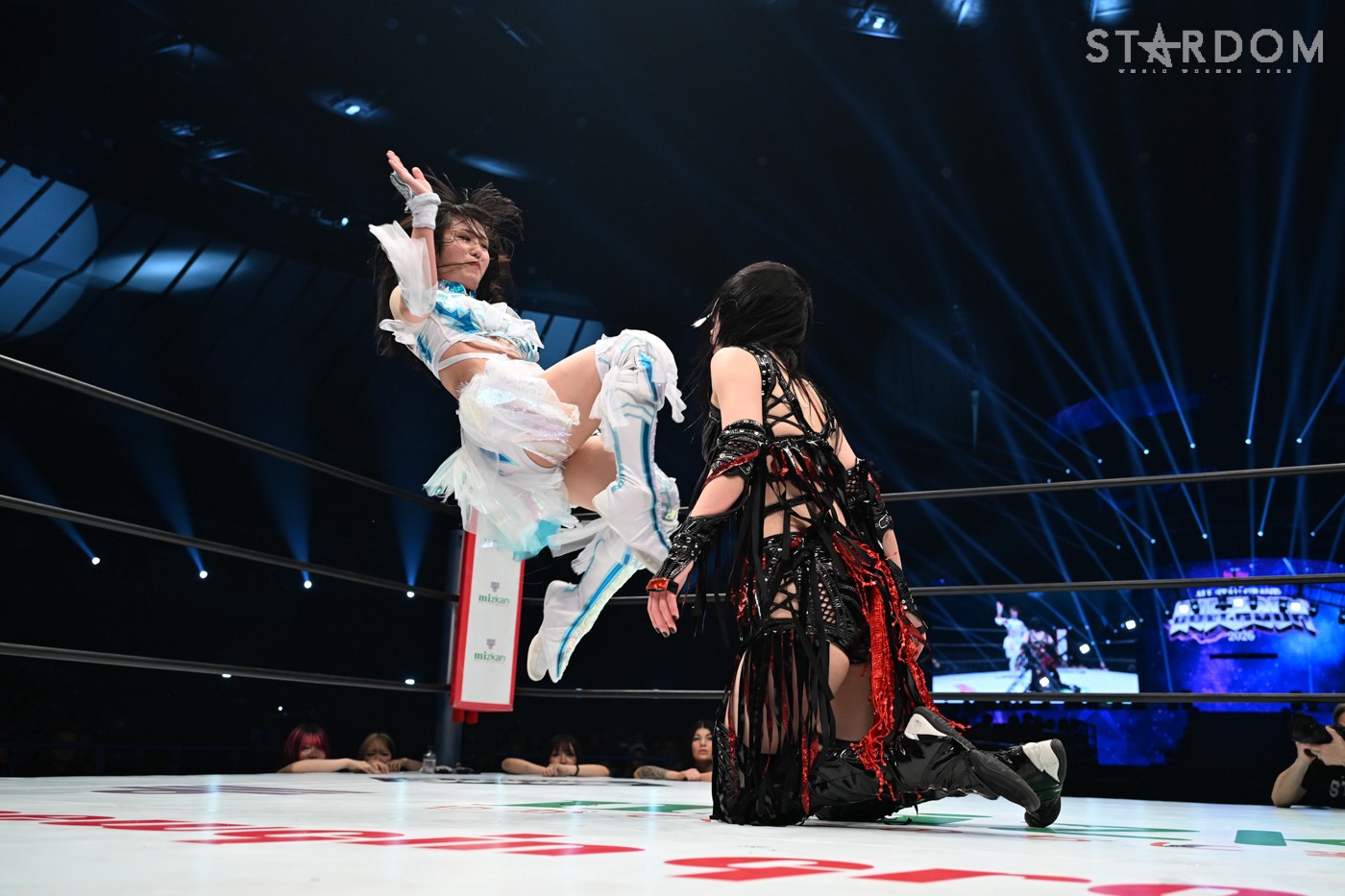 試合後のバックステージでは、この日の第1試合でなつぽいに勝利している伊藤麻希が登場。「極悪ヒールユニットCOSMIC ANGELSの黒幕である玖麗さやかを、この伊藤麻希が倒さなければならない。なぜなら伊藤麻希がこそがスターダムの光であり、伊藤リスペクト軍団こそが正義だからだ。その赤いベルトに挑戦させろ」と訴えてきた。