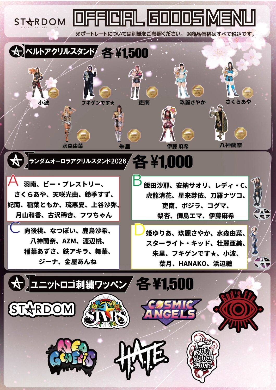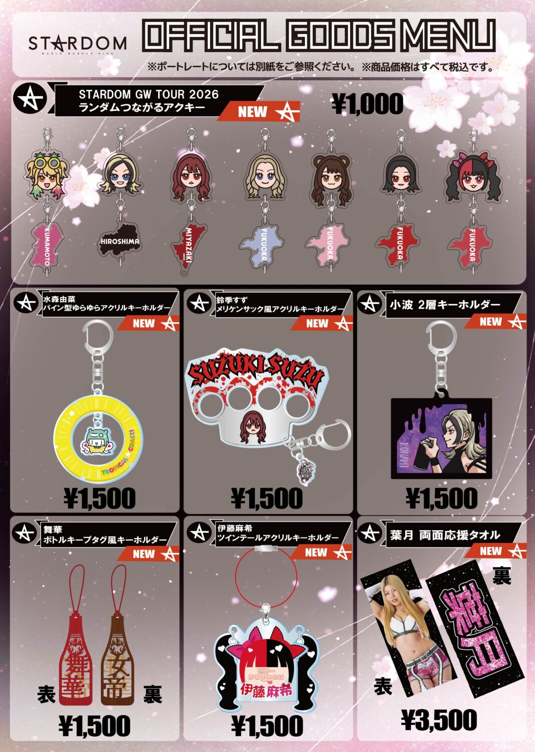 4月29日(水)広島・福山大会より始まるSTARDOM GW ツアーにて様々なグッズを販売いたします!