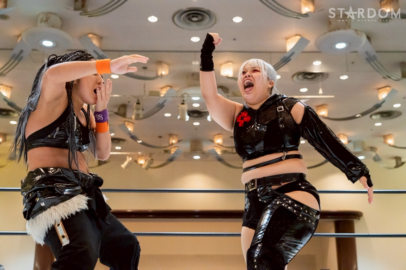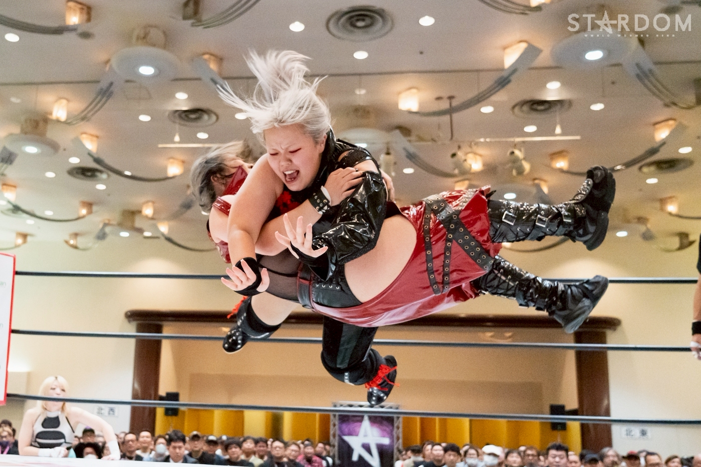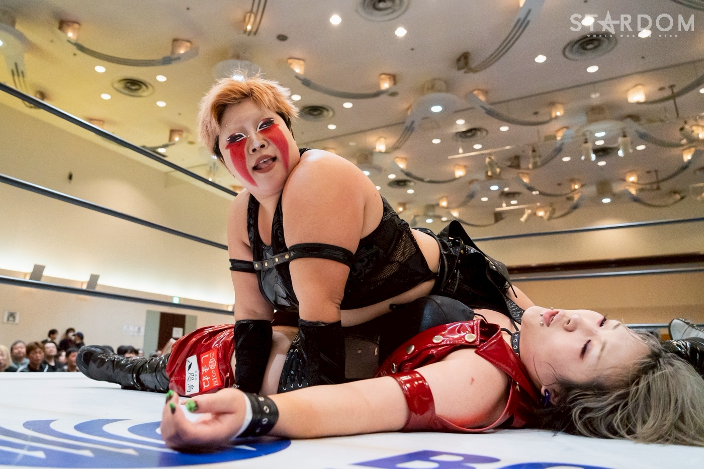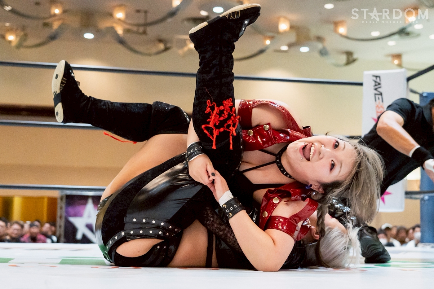 ミ・ヴィダ・ロカの山下りな&青木いつ希&鉄アキラ組とH.A.T.E.の刀羅ナツコ&琉悪夏&吏南組が6人タッグマッチで激突。10・27後楽園ではMVLの山下&青木組がナツコ&琉悪夏組のゴッデス・オブ・スターダム王座に挑戦するため、この試合はタイトルマッチに向けての前哨戦となる。いよいよ開戦なったH.A.T.E.とMVL。大一番に向けて、大荒れ必至の全面対決だ。