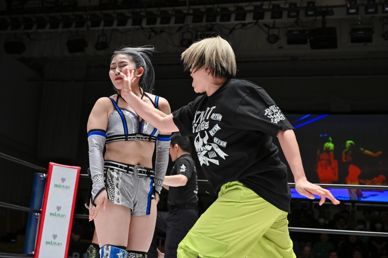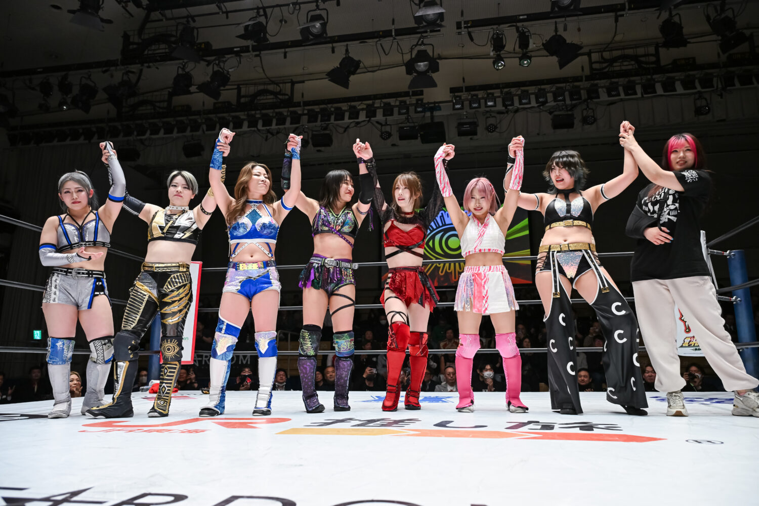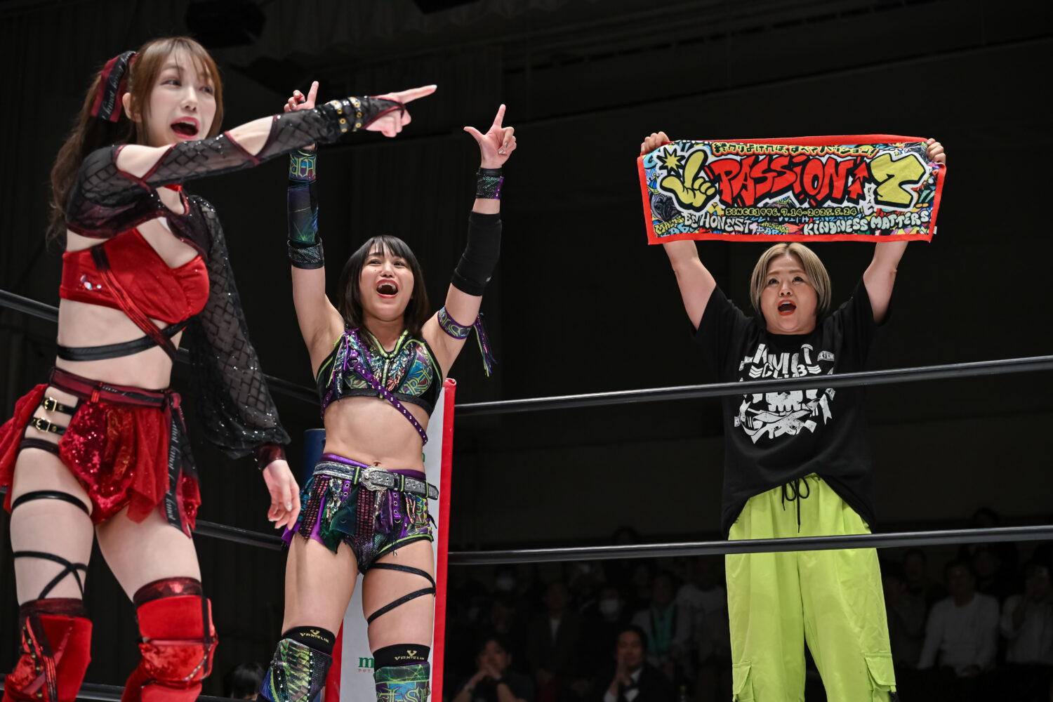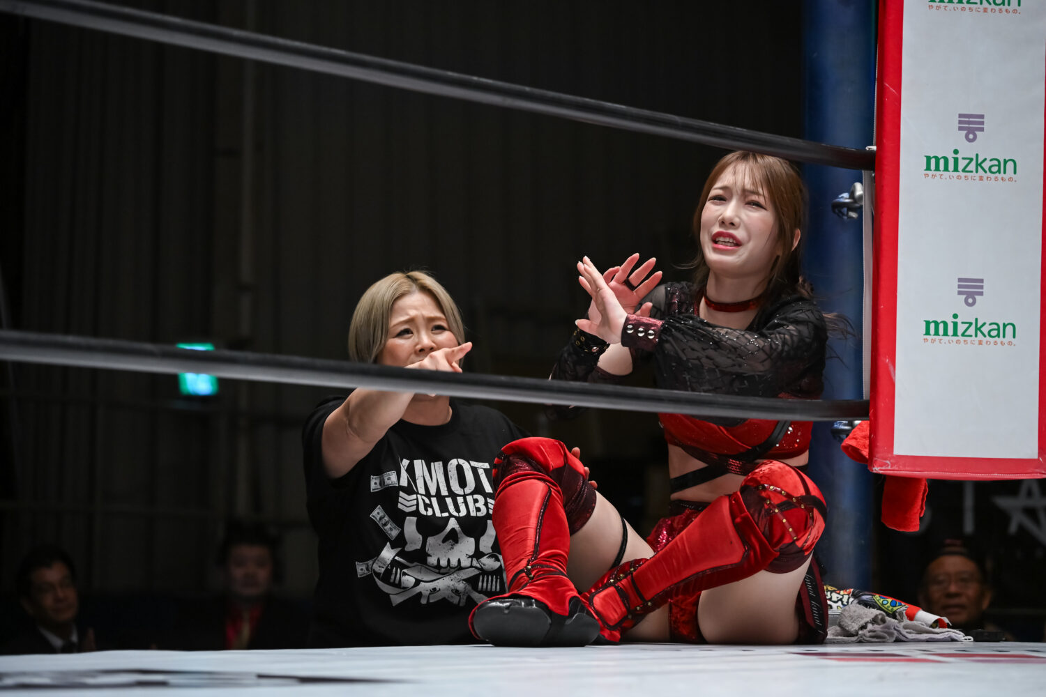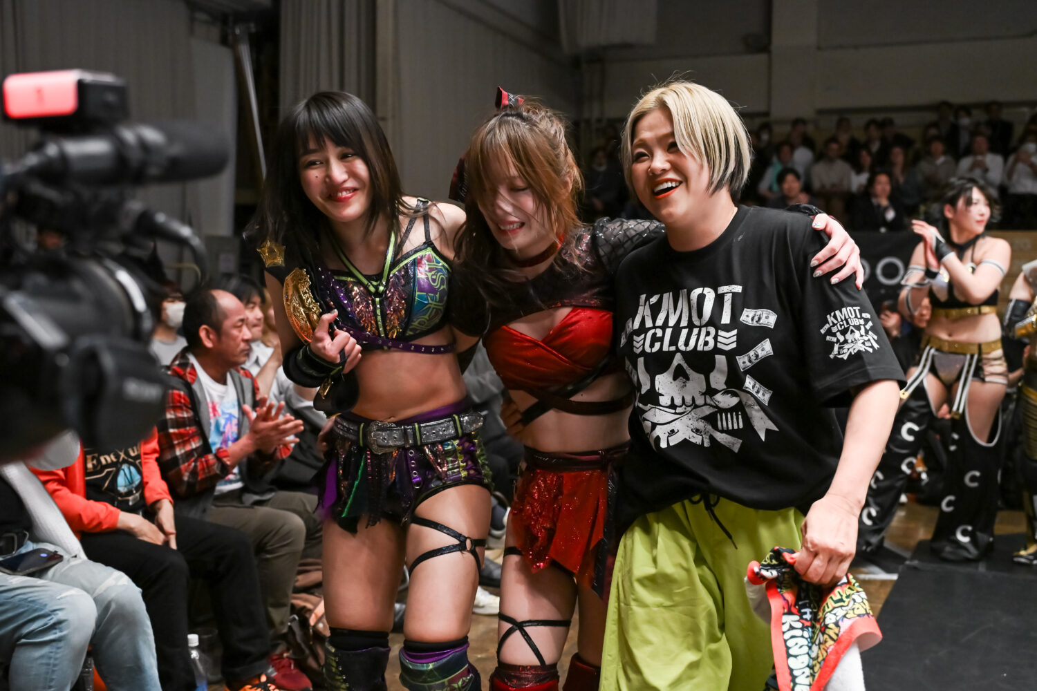 最終的に妃南の外道クラッチに沈んだものの、鹿島ワールド全開の試合で会場を盛り上げた。試合後は、負傷欠場となった壮麗亜美も加わり、God’s Eyeメンバーと健闘をたたえあった。さらにハグした高橋から言葉をかけられ涙するシーンも。