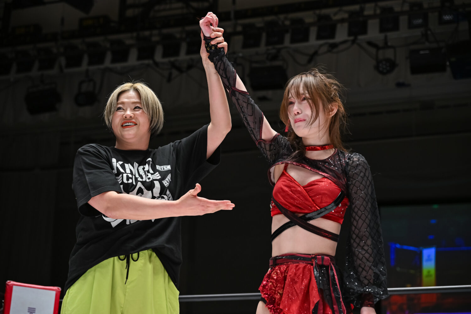 バックステージで鹿島は「絶対に負けたくないので化け物を投入しました。ご覧の通り、みんなビビってらっしゃいました。そんなビビるくらい最強のナナエさんと自分はデビュー戦をしました。デビュー戦をしてくれて本当にうれしかったですし、ナナエさんがデビュー戦で良かったなって。さっきそれをリング上で伝えたんですが『なんて?』って(笑い)。幸せな時間でした」と試合を振り返った。