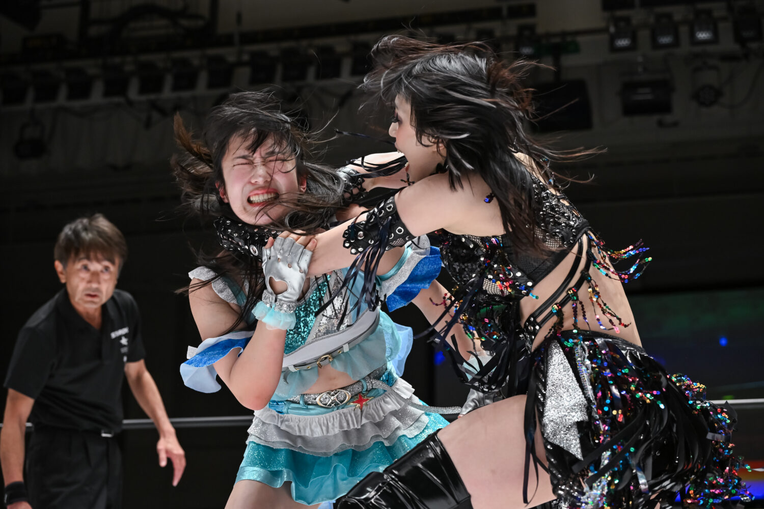 勝負どころで玖麗を孤立させると、強烈なビッグブーツで吹っ飛ばす。ときめきスピアーをカウント2で返すと、15分過ぎだった。永遠にさようならがズバリ決まり、次期挑戦者から直接3カウントを奪った。