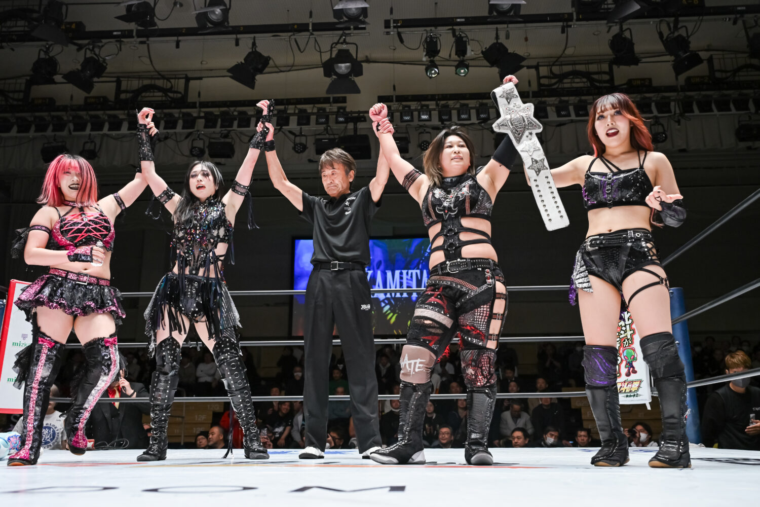 玖麗は「見とけよ~!」と感情むき出しで向かってきたが、上谷はベルトで殴打。敵軍を退散させるや「しもべたちよ、4・26横浜アリーナでゴッデスも白も、そして赤も全部防衛して、まだまだH.A.T.E.がお前らに史上最大の悪夢を魅せてやるよ。しもべたちよ、ひざまずけ、永遠にさようなら!」と締めくくった。