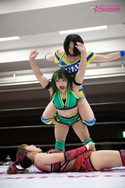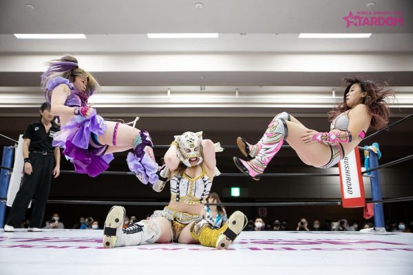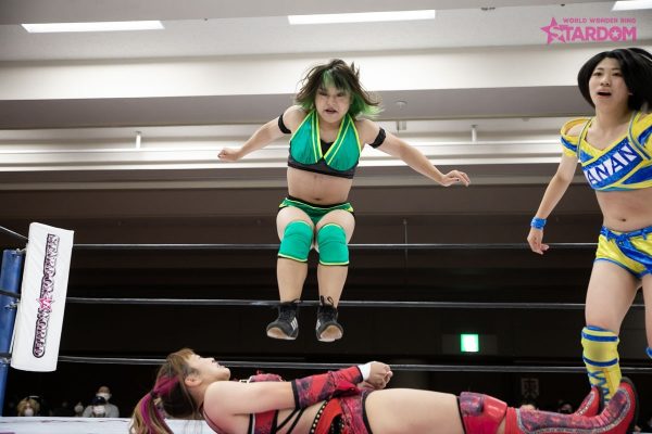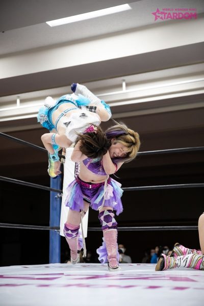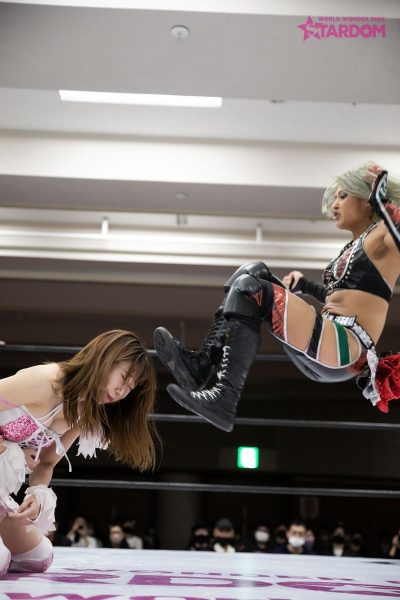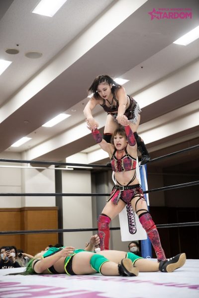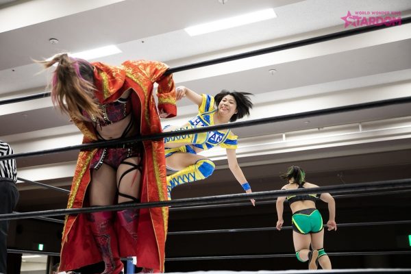 最後に朱里がコールされたところで飯田と羽南がドロップキックの奇襲攻撃。相手を分断すると朱里をロープにかけて背中へのドロップキックをダブルで連打する。朱里の蹴りを飯田がキャッチしエルボーを落とすとカウンターでショルダータックル。朱里はローキックの連打で飯田の動きを止めるとコーナーに追い込む。ひめかが入りダブルの串刺し攻撃から滞空時間の長いブレーンバスターで合体。朱里は飯田にサッカーボールキックから片足カバー。飯田が返すと自軍コーナーに叩きつけてひめかに託す。ひめかは飯田の頭部をコーナーに叩きつけてヘアーホイップの連続。ひめかは高々と飯田にボディースラムの連発。朱里が飯田の腹部にニーを連打。狙いを済ましてニーアタックもヒットさせる。さらにエプロンでギロチンを投下。飯田を戻すとブレーンバスター。返した飯田が「ふざけんな!」と逆水平の連打。朱里は「もっと!」と受けて立つ。朱里が突進すると飯田はカウンターで逆水平。羽南がドロップキックを朱里に連打。飯田を呼び込むとフットスタンプを交互に放つ。飯田が羽南を背負いボディープレス。羽南がカバーするが朱里がクリアー。羽南の突進に朱里がニーからサッカーボールキック。正面からも蹴り上げるが2カウント。ひめかが串刺しボディーアタックから羽南に逆エビ固め。羽南は自力でロープに辿り着く。ひめかが背後からニーアタック、朱里がエプロン越しに蹴り上げる。羽南が返すとひめかがアルゼンチン狙い。羽南がまるめ込みの連続で3カウントを狙う。飯田がひめかにドロップキック、バックエルボーアタック。返された飯田はノーザンライトの構え。ひめかがこらえると朱里が介入、ひめかがニー。飯田が返すと、ひめかは「終わり!」と絶叫しアルゼンチン。しかし羽南がカットに入る。飯田と羽南がダブルのドロップキック。飯田はひめかにミサイルキック投下。ひめかが返すと飯田はノーザンライトスープレックス。投げきってみせるが朱里のカットが間に合う。ひめかはカウンターのラリアットから担ぎ上げて叩きつける。しかしギリギリで飯田がクリアーし飯田橋。朱里がカットするとニーアタックからマットに叩きつけ、ひめかと朱里でファンタスティックフリップ。決まったと思われたが羽南がカットに成功。ひめかは飯田にランニングパワーボム。これで3カウントが入り、ひめかが勝利した。