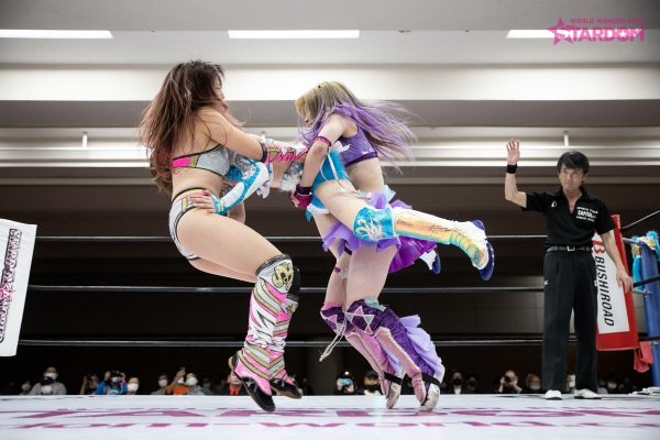 前橋大会のメインには、岩谷麻優&スターライト・キッド組vs中野たむ&白川未奈組のゴッデス・オブ・スターダムタッグリーグ公式戦が組まれた。図式としてはSTARS同門対決ながら、どちらも負けられない試合である。というのも、岩谷&キッド組は開幕から2日間で連敗と早くも崖っぷち。この試合で無得点となれば脱落は確実だ。一方の中野&白川組は、大江戸隊を破り白星発進。この試合で白星をゲットすれば、決勝進出に向けて大きな2点となる。注目は、赤いベルトの王者・岩谷とスターダム参戦の道を選んだ白川の遭遇か。優勝の行方を左右するメインイベントだ。