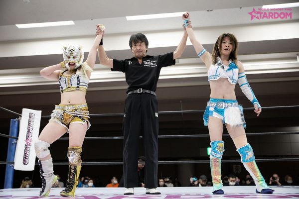 キッド「おめでとうございます。これからSTARSの一員となって、ともに闘っていきましょう! 前橋のみなさん、ホントはここでおこなわれるはずだったんですけど、新型コロナウイルスの影響でなくなってしまってホントに残念だったんですけど、今日無事に開催することができてホントにうれしく思います。群馬に来て試合をするのは私たちは初めてだったんですけど、これで群馬のみなさんが温かく受け入れてくださってすごくうれしかったです。毎年開催できたらいいなって思ってます。いまを信じて、明日に輝け、We are STARDOM!」