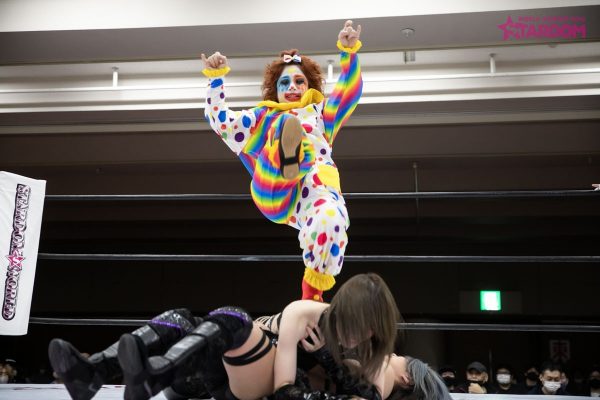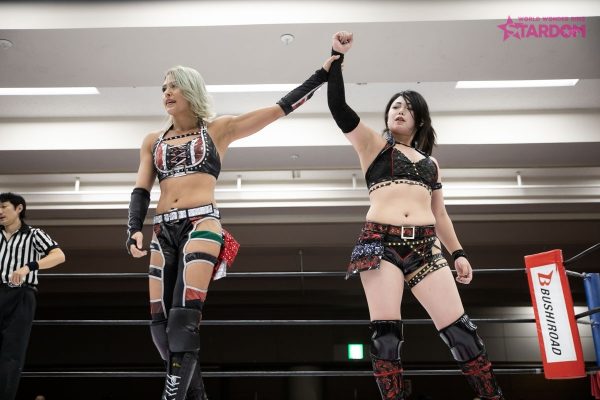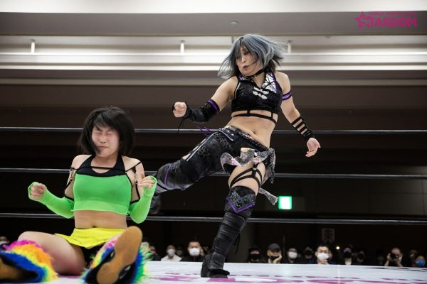 里歩が握手を求めようとするがDDMは動かず。妃南と舞華の先発でゴング。ともに引き合い舞華がグラウンドに持っていく。舞華のヘッドロックを妃南が返すとヘッドシザーズもクリアー。里歩が入って串刺し攻撃を舞華に見舞う。妃南がカバーするが舞華が返す。妃南が突進するとエプロンからジュリアがカット。ジュリアと舞華が合体のビッグブーツからバックドロップ、エルボードロップ。舞華が妃南にボディースラム、ストンピングの連打。ロープに追い込み顔面を踏みつけるとジュリアも加わる。ジュリアが妃南にゆっくりとネックブリーカードロップ。妃南が返すとジュリアはフロントネックロック。舞華が妃南にボディースラムから逆エビ固め。里歩がカットするがジュリアがさらなるカットを妨害。舞華は逆エビ固めを続行。ジュリアが里歩をスリーパーにとらえて介入を阻止。しかし妃南は自力でロープに到達。舞華がエルボー連打、妃南が払い腰で投げつけ里歩に託す。里歩が舞華にドロップキック。控えのジュリアを落として舞華にノーザン狙い。舞華がこらえてジュリアを呼び込む。DDMがクローズラインも里歩がくぐり抜けて舞華にDDT。里歩は舞華にクロスボディーもキャッチされる、舞華がロックボトムで里歩を叩きつける。ジュリアが里歩に風車式バックブリーカー。里歩がブレーンバスターをかわすがDDTを食らう、ジュリアは顔面へドロップキック。里歩が返すとジュリアはコーナーへ。しかし妃南がカットし里歩がデッドリードリブからダイビングフットスタンプ。妃南がジュリアにドロップキックからボディースラムの構え。ジュリアがこらえて反対にボディースラムを狙う。しかし妃南がこらえてエルボー連打からドロップキック。ボディースラムから押さえ込むがジュリアが返す。ジュリアがエルボーを放つと妃南も打ち返す。エルボーの応酬から妃南が連打、ジュリアのバックドロップ狙いを妃南がこらえるが、ジュリアはSTFにとらえてみせる。里歩がカットするが舞華が分断。舞華は妃南にボディースラムも2カウント。ならばと逆片エビ固めでギブアップを迫る。妃南は必死にエスケープ。舞華が担ぎ上げると妃南が里歩に投げつけマットに叩きつける。外道クラッチは舞華がクリアー。妃南がダッシュすると舞華がカットし体勢を崩しながらもブレーンバスター。 山茶華(さざんか)を決めると妃南がかえせず舞華が3カウントを奪った。