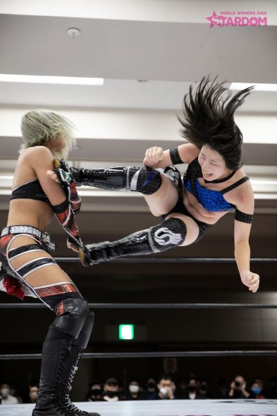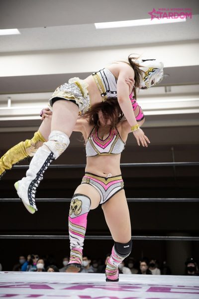 飯田沙耶&羽南組vs朱里&ひめか組によるゴッデス・オブ・スターダムタッグリーグ公式戦。2戦目の飯田組は10・11新木場で黒星発進も、渡辺桃&AZM組に大健闘。キャリアこそ浅いものの、決して侮れないチームであることを見せつけた。それだけに、優勝候補とも言える朱里&ひめか組に油断は大敵だ。朱里組は開幕戦で林下詩美&上谷沙弥のタッグ王者チームに勝って白星発進。王者チームがリーグ戦で低迷するきっかけを作ったと言ってもいいだろう。となれば、朱里組としては確実に連勝を記録しリーグ戦を有利に運びたいところだが、この試合でも飯田組が開幕戦で見せた、とにかく前に向かっていく姿勢に期待したい。番狂わせ、なるか!?