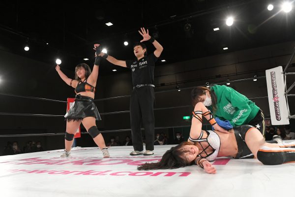 舞華「無事、こないだ後楽園ホールで負けてるけど、最後の前哨戦で上谷に勝つことができました。この勢いに乗って飯田、上谷、私が2人まとめてぶっ倒して、このフューチャーのベルトを防衛したいと思います」