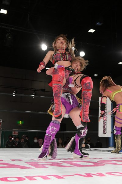 STARS飯田沙耶、大江戸隊・小波、コズミックエンジェルズの白川未奈が3WAYマッチで対戦。翌日の12・20大阪では飯田が舞華のフューチャー・オブ・スターダム王座に上谷沙弥との3WAYマッチで挑戦。3WAYは飯田にとって予行演習か。また、12・16後楽園でアーティスト・オブ・スターダム王座を一発奪取した白川には翌日の大阪で初防衛戦が待っている。こちらもタイトルマッチに向けて調子を上げたい試合だろう。