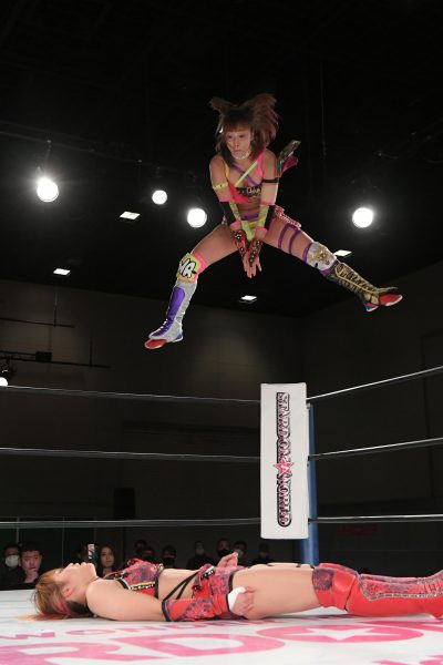 コズエンが握手を求めDDMがゆっくりと応じる。中野となつぽいが先発し、すぐに朱里とウナギが対峙。朱里がヘッドロックに取るとロープに振らせずグラウンドで絞め続ける。ウナギがヘッドシザーズにいくも朱里がすぐに脱出しサッカーボールキックを見舞う。なつぽいがウナギの背中にドロップキック、コーナーに叩きつけると背中にドロップキック。朱里がウナギをコーナーに追い込むとストンピングの連打、朱里は串刺しニーアタックからカバーするがウナギが返す。すると朱里は逆片エビ固めにもっていく。場外ではなつぽいが中野を攻撃。ウナギがエスケープすると、朱里はフロントネックロック。なつぽいがウナギにヘアーホイップを連発し低空ドロップキック、朱里がニーアタックで続く。中野の突進をなつぽいがかわす。朱里が入って合体するが、中野が分断してなつぽいに側転ニードロップ。なつぽいと中野がエルボーの打ち合い。中野がバックキックから突進すると、なつぽが丸め込みからトラースキック。朱里が中野にミドルキック連打。コーナーに追い込み、串刺しニーアタックからフロントネックチャンスリードロップ。中野が丸めこむが朱里が返す。中野は低空のキックからウナギに託す。ウナギが朱里をボディースラム、ギロチンドロップ、ゴリースペシャルの構え。朱里が切り返して変型卍固め。中野がカットしバックドロップ、ウナギがマッドスプラッシュ。ウナギが突進すると、なつぽいがドロップキックでカットし朱里がなつぽいを抱え上げてウナギに落下させる。2人がキックで競演するが中野がカット。ウナギが朱里にゴリースペシャル。しかし、なつぽいのカットが成功。中野がなつぽいをスピンキックで排除。朱里がウナギを挑発。ウナギがエルボー連打も朱里が押し倒してカバー。ウナギが返すと、10分経過。朱里がランニングニーからサソリ固め。ウナギがギブアップし、朱里が勝ち名乗りを受けた。