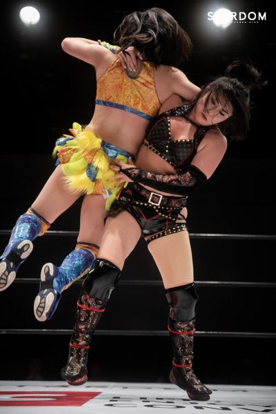 DDMvs新世代のシングル4番勝負の3番目は、舞華vs羽南。ともに柔道をバックボーンに持つ2人。地元・福岡でのシングルマッチとして絶対に負けられない舞華と、高校生になって急成長を見せスターダムの次期エースとしての期待も集める羽南がどう闘うか。