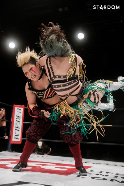 DDMvs新世代のシングル4番勝負の4番目は、なつぽいvs白川。両者は2020年8月に東京女子プロレスのプリンセス・カップ1回戦にてシングルマッチで対戦しており、その際にはなつぽいが勝利している。スターダムに闘いの場を移し、ともにベルトホルダーとなった2人がどのような試合を展開するのか。