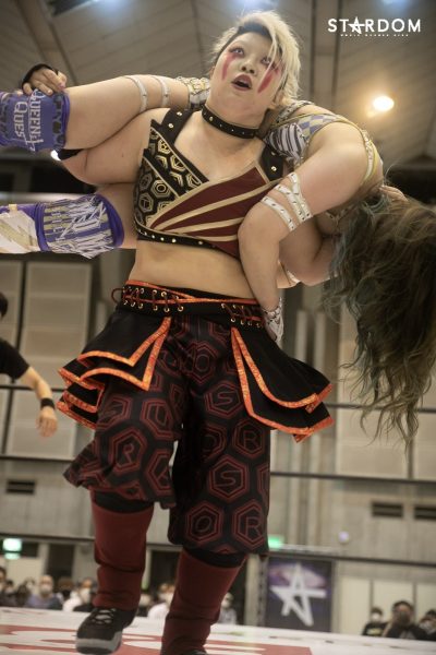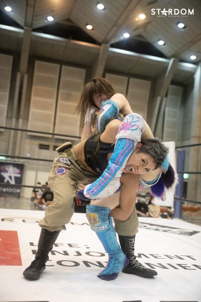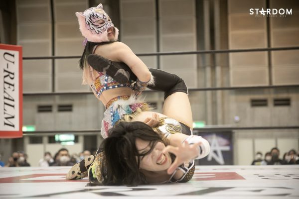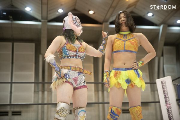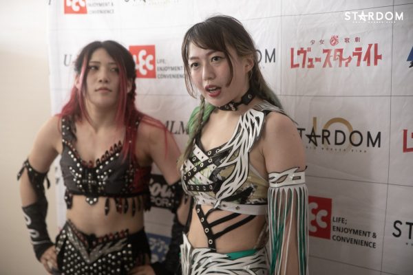 上谷「自分たちアフロディーテ、ゴッデスのベルトに挑戦するわけなんですけれども、自分は個人的に前回ゴッデスのベルトを防衛していたときに少し悔いが残ったところがあるので、そこを晴らしたいという気持ちがあります。なので、このさらにパワーアップしたアフロディーテでゴッデスのベルトをあの2人から取って、ゴッデス最多防衛記録を私たちが残していきたいと思っています」