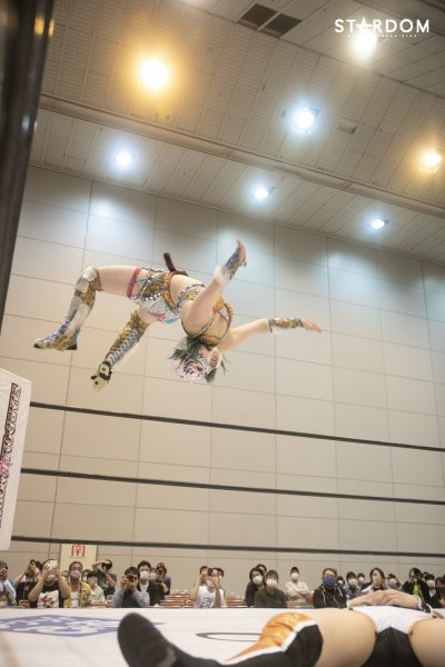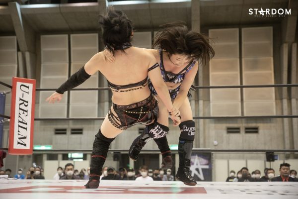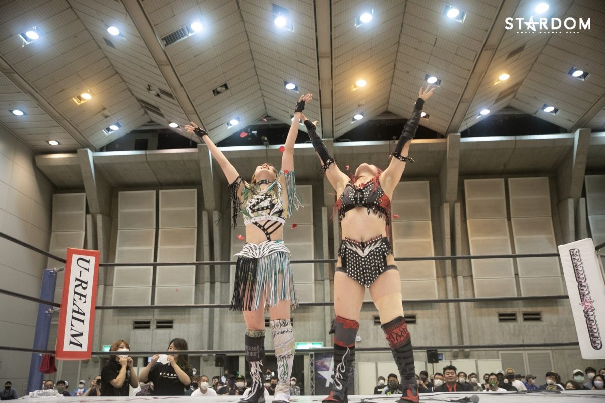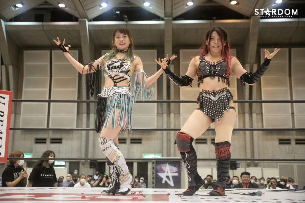 詩美「上谷が言った通り、私たちは以前この2人でタッグのベルト、ゴッデスを持っていましたし、あの頃からさらに成長した、違うアフロディーテになっていると思います。挑戦した際には必ずベルトを取って、私たちが最強タッグだと思っていますので、さらに輝きたいと思います。今日の5月23日山梨大会、スターダムの明るさ、華やかさ、強さがみなさんに、空にも、いろんな方に届いたと思います。まだまだスターダム、そしてクイーンズクエスト、私たちアフロディーテ、どんどん輝きたいと思います。Bow down to the queens」