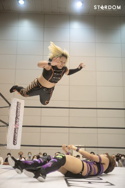 STARSのスターライト・キッド&羽南がウナギ・サヤカ&レディ・C組と対戦。COSMIC ANGELSのウナギと無所属レディの大型タッグがどんな化学反応を見せるか。STARSナンバーツーでもあるキッドが成長著しい羽南をどこまで引っ張るかも勝敗のカギを握りそうだ。また、フューチャー・オブ・スターダム王座を争う可能性があるウナギと羽南の顔合わせにも注目だ。