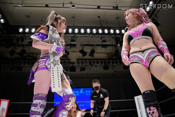 朱里&舞華組とスターライト・キッド&琉悪夏組はともに決勝進出の可能性があり、どちらも負けられない公式戦となった。朱里は赤いベルト権利証を保持し、2大会(11・6大津&11・7富士)欠場もこの試合で11・3川崎以来の復帰となる舞華は、赤いベルトの次期挑戦者。もしも舞華が11・27代々木で林下詩美を破りワールド・オブ・スターダムを初戴冠すれば、12・29両国で朱里が舞華に挑戦するドンナ・デル・モンド同門対決の図式となる。そんな関係の両者だが、まずはタッグリーグ戦優勝が目先の目標。ここはキッド&琉悪夏の大江戸隊を倒し、決勝進出を手に入れたいところだが、どうなるか。もちろん、キッド&琉悪夏組も勝利すれば逆転で朱里組を上回る。キッドがハイスピードで、琉悪夏はフューチャー王者。シングル王者2人のチームだけに、どこまで朱里&舞華組を追い込むことができるか注目される。