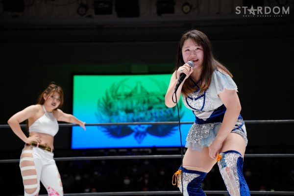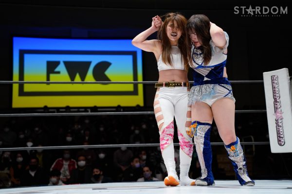 葉月「後楽園のみなさん! 先月言った言葉、覚えてますか。私たちがこの後楽園ホールでタッグリーグ優勝する。2021年、MOMOAZを倒してFWC、私たちが優勝しましたー! 私たち、この勢いのまま、朱里、ジュリアの持っているゴッデスのベルト、挑戦したいと思います!」