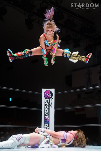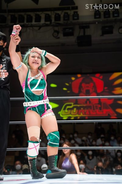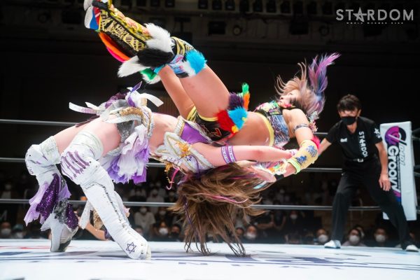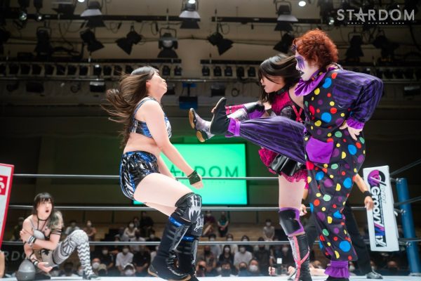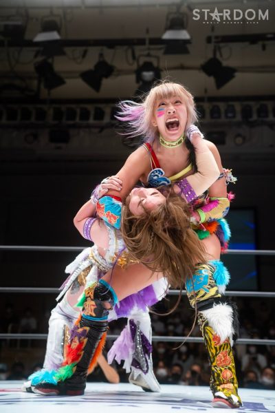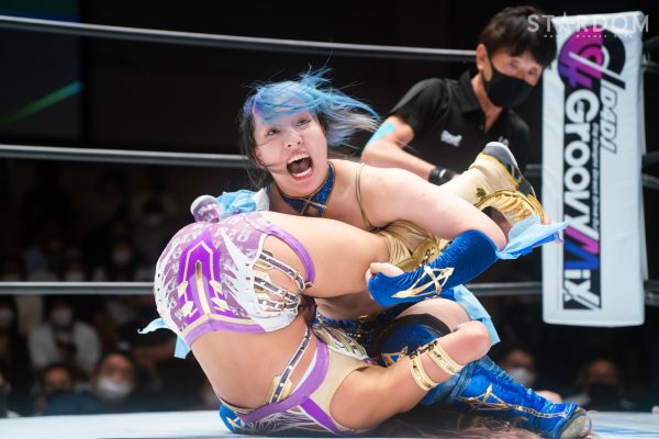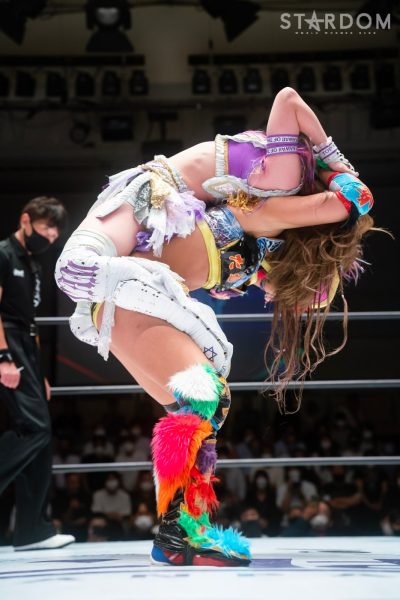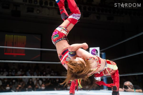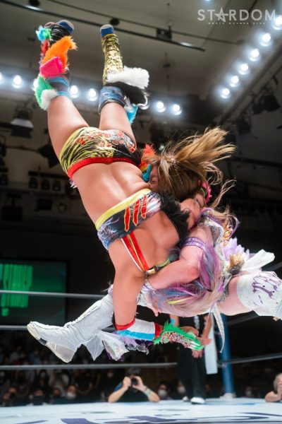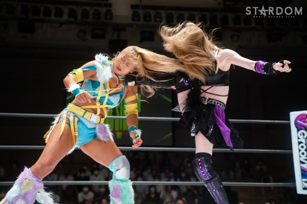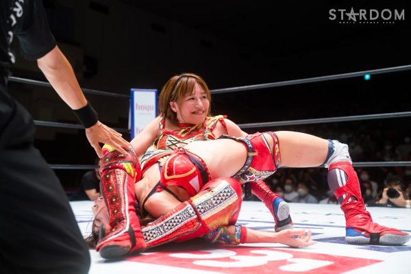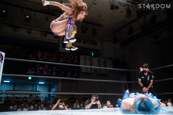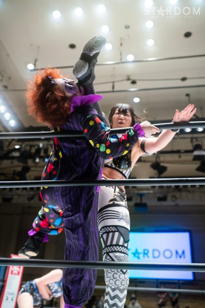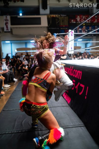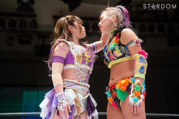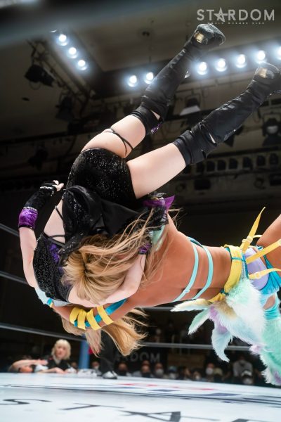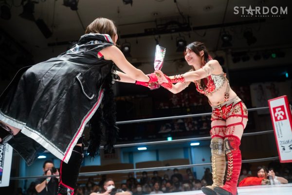 ゴッデス・オブ・スターダム王者なつぽいとフューチャー・オブ・スターダム王者・羽南による5★STAR GP公式戦。いまだ白星のない羽南が待望の初勝利を挙げるかどうかが焦点にもなるが、なつぽいは前日の横浜大会メインでゴッデス・オブ・スターダム王座を防衛。リーグ戦では後がないだけに、昨日の勢いそのままに確実に2点をゲットしておきたいところだろう。