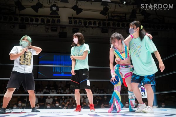 岩谷「後楽園ホールのみなさん、こんばんは!(倒れたままで)本日も後楽園ホールお越しいただきありがとうございました!最後、メインイベントで勝ったんですけど、マイクする気力が残ってないです。もう帰りたい、帰りたい。昨日横浜武道館でジュリアと15分ドローして、きょうも…。でも無事に勝ち点2ポイントゲットしたんで、岩谷麻優が優勝する確率全然ありますよね。STARS3人、代わりに締めてください」