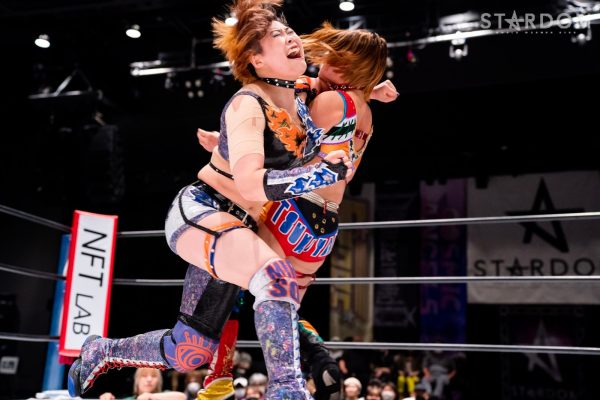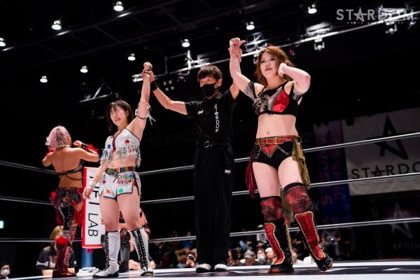 ジュリアと鈴季が先発。両者コーナーから動かず、ゆっくりと歩を進める。グラウンドの攻防でスタートし、ジュリアがヘッドロック。鈴季が切り返しヘッドロックで締め上げる。鈴季はネックロックに切り替える。ジュリアが切り返し睨み合い。テクラと星来がリングイン。星来はテクラの足を何度も踏みつけ走ろうとするとテクラが髪を引く。星来が向かっていくとテクラはスパイダーポーズで威嚇。ロープワークでテクラがアームホイップ。エルボー、ドロップキックが交錯する。テクラは星来のドロップキックをかわしインディアンデスロックから鎌固め。ジュリアが星来にボディースラム。テクラもボディースラムで続く。ジュリアが再びボディースラム。星来が返すと、ジュリアはSTFへ。鈴季がカットするとジュリアが場外に追い出す。星来の突進にジュリアはドロップキック。2発目を星来がかわしエプロンからドロップキック、リング内でもう一発。鈴季がジュリアにニーアタックを連打。テクラが乱入しジュリアと合体。鈴季がかいくぐり鉢合わせにすると、まとめてスピアをぶち込む。鈴季のエルボーにジュリアが対抗。エルボーの応酬からジュリアが蹴り上げるが、鈴季もカウンターで蹴り上げる。鈴季はスライディングジャーマン、ミサイルキック。ジュリアが返すと、鈴季はフィニッシュを宣言しジャーマンの構え。ジュリアが抜け出すと星来がネックブリーカー。鈴季が蹴り上げる。鈴季の蹴りをかわしてジュリアがバックドロップ。鈴季はブレーンバスターを切り返しジャーマン。ジュリアのニーで両者ダウン状態。テクラが鈴季にエルボー、ビッグブーツ、エプロンからフロントキック、ダイビングボディーアタック、腕十字。10分経過。鈴季と星来が次々とテクラに串刺し攻撃。テクラが返すと鈴季にスピア。ジュリアが鈴季を担ぎテクラのネックブリーカーと合体。ジュリアとテクラでエルボーの挟み撃ち。しかし鈴季が返してみせる。テクラは鈴季に毒グモ狙い。鈴季が丸め込むがテクラが切り返しサブミッション。テクラは左右の張り手も鈴季が丸め込む。テクラが返すと回転足折り固め。しかし星来のカットが間に合う。鈴季がバックを取り星来がダイビングボディーアタック。鈴季がバズソーキック連打もテクラが返す。残り2分。鈴季がテキーラショットを決めるとテクラが返せず3カウントが入った。試合後にはジュリアと鈴季が視殺戦。