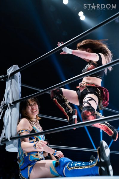 KAIRI&なつぽい&安納サオリ組のREstartが保持するアーティスト・オブ・スターダム王座にドンナ・デル・モンドのジュリア&桜井まい&テクラ組が挑戦するタイトルマッチ。4・23横浜アリーナでプロミネンスを破ったKAIRI組にはこれが初めての防衛戦だ。ジュリアと安納はアイスリボンのリングでベルトを争ってきた仲。久々の再会になった前哨戦では、白黒つかず決着は持ち越しとなった。やはり試合はジュリアと安納による攻防が焦点か。