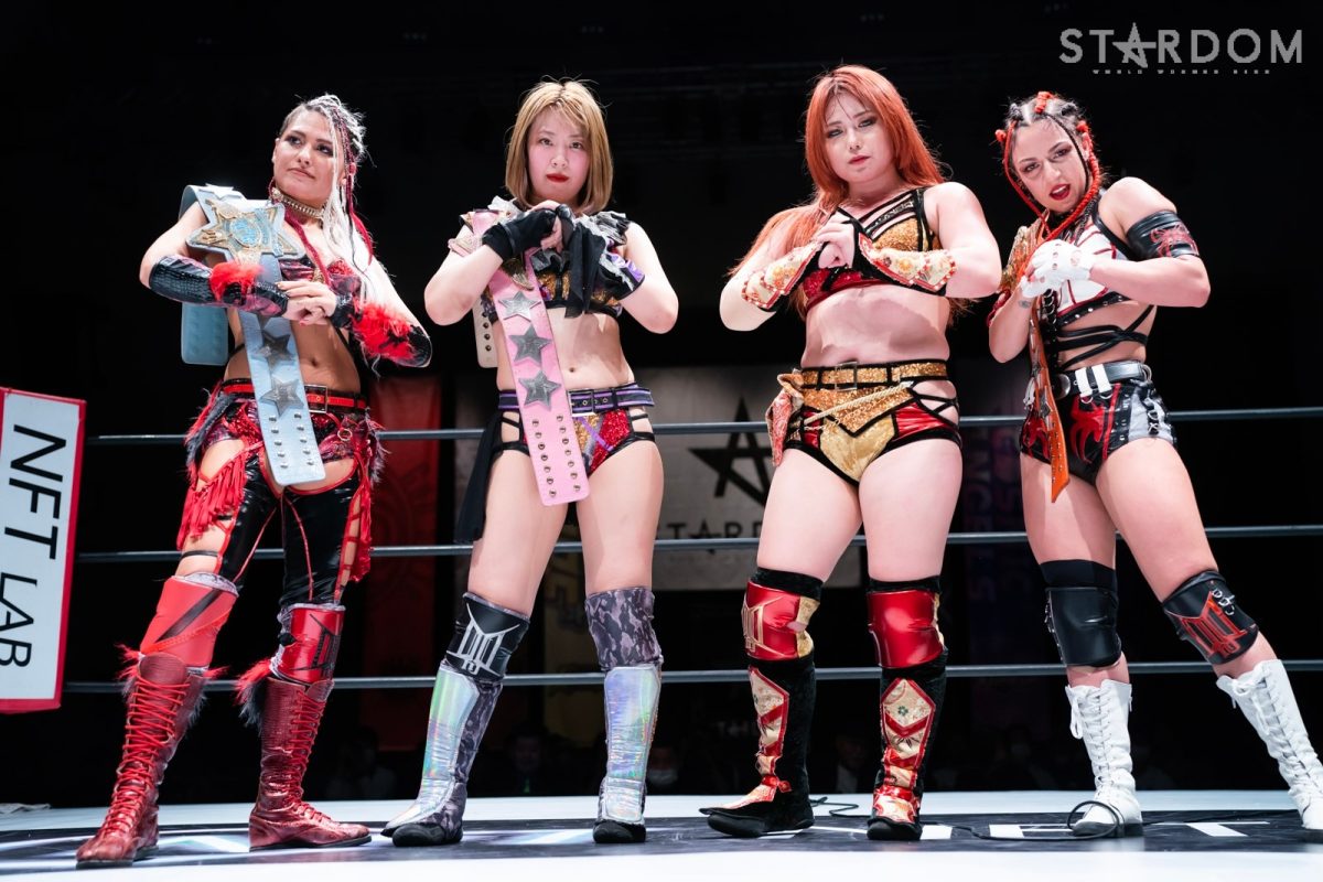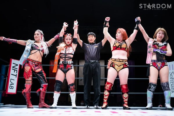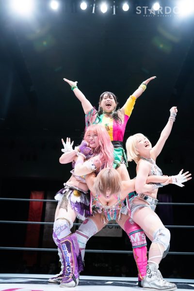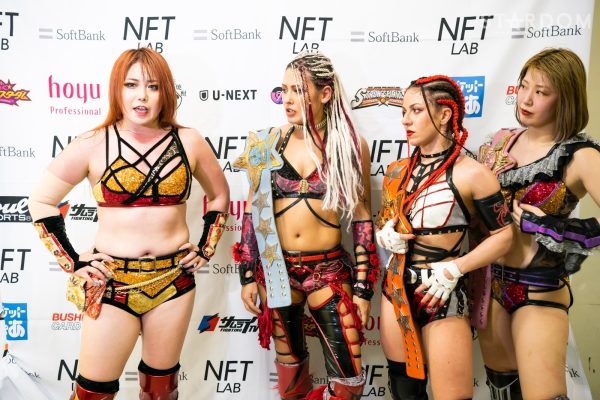 STARSの向後桃と新人のさくらあやがタッグを結成、クイーンズクエストのレディ・C&天咲光由組と対戦。フレッシュな闘いでなにが生まれるか?